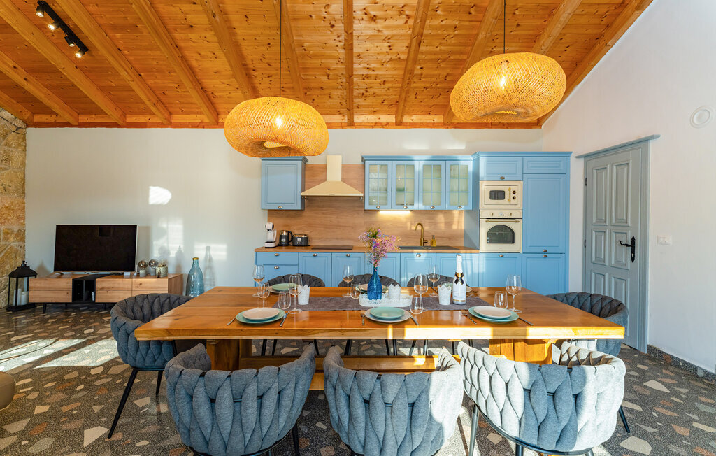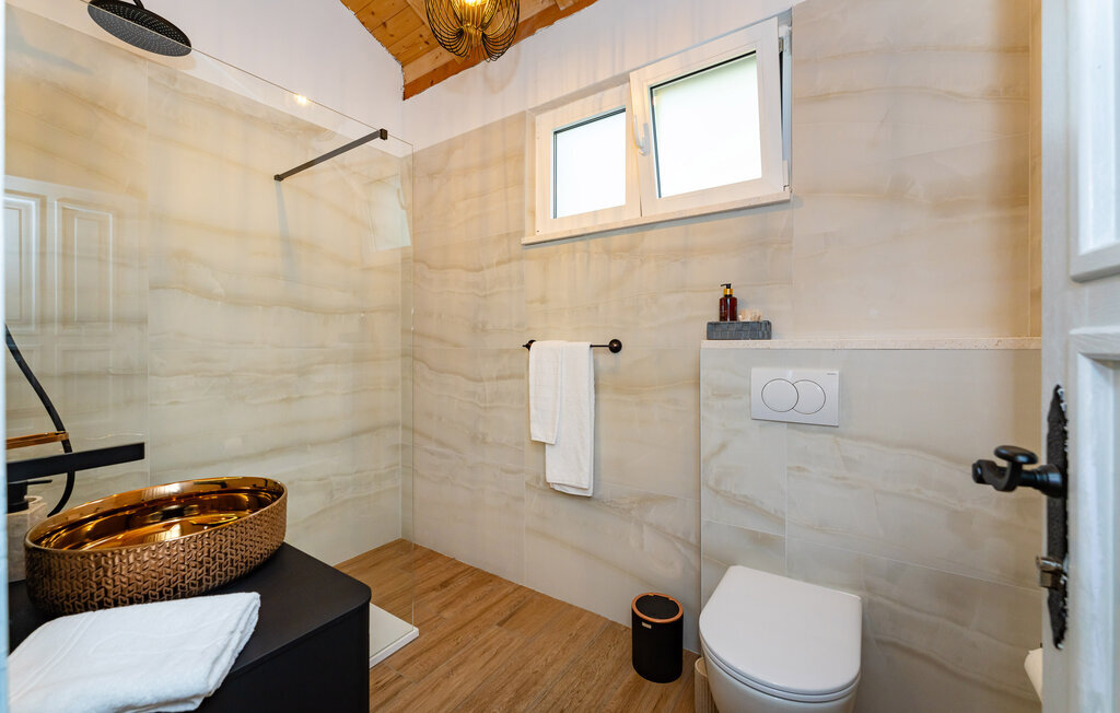 Bienvenue dans cette location de vacances spacieuse et aérée à Krusevo, qui allie confort moderne et style architectural traditionnel. Les deux bâtiments vous offrent beaucoup d'espace et une atmosphère lumineuse et accueillante. L'aménagement élégant combine la modernité avec des éléments rustiques et crée une ambiance confortable, parfaite pour des vacances reposantes en famille ou entre amis. Posez vos pieds sur le canapé et profitez de la communication avec les cuisiniers amateurs dans la cuisine, car le grand salon réunit tout le monde.