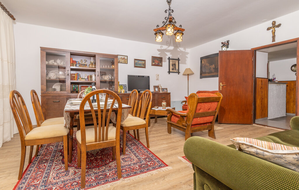 Préparez un café dans la cuisine accueillante et commencez votre journée par un petit-déjeuner détendu. L'intérieur de la maison est aménagé avec soin et dans un style traditionnel, avec un coin salon confortable, un coin repas et un décor nostalgique. Le salon, avec ses meubles en bois et ses couleurs chaudes, respire la convivialité.