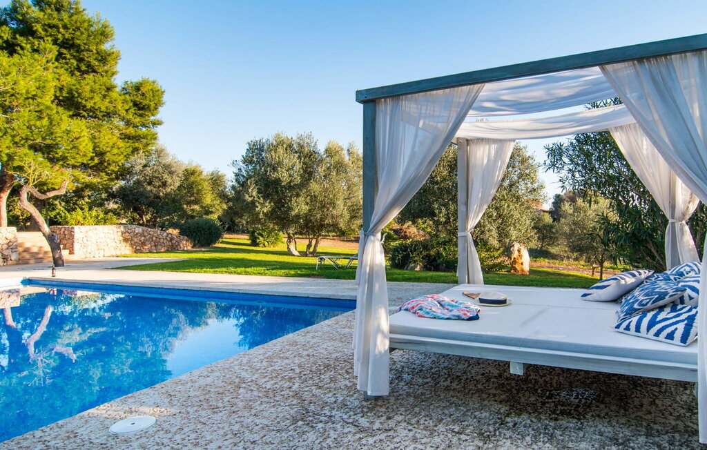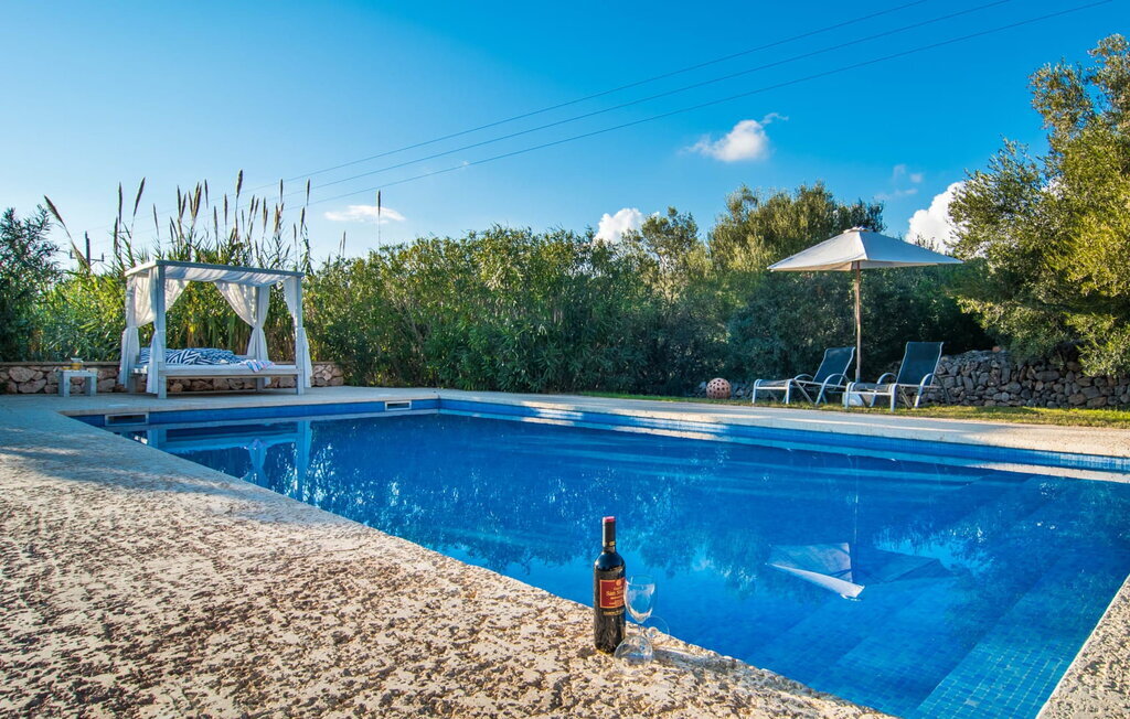 La piscine privée, décorée de calcaire majorquin, vous invite à une baignade rafraîchissante, tandis que des marches douces permettent un accès facile. Offrez-vous un massage sous l'eau pour vous détendre, suivi d'un léger yoga sur une chaise longue dans l'un des nombreux endroits calmes autour de la villa. Pour les plaisirs culinaires, la cuisine extérieure est équipée d'un barbecue en pierre et d'un espace repas spacieux, parfait pour les collations et les dîners.
