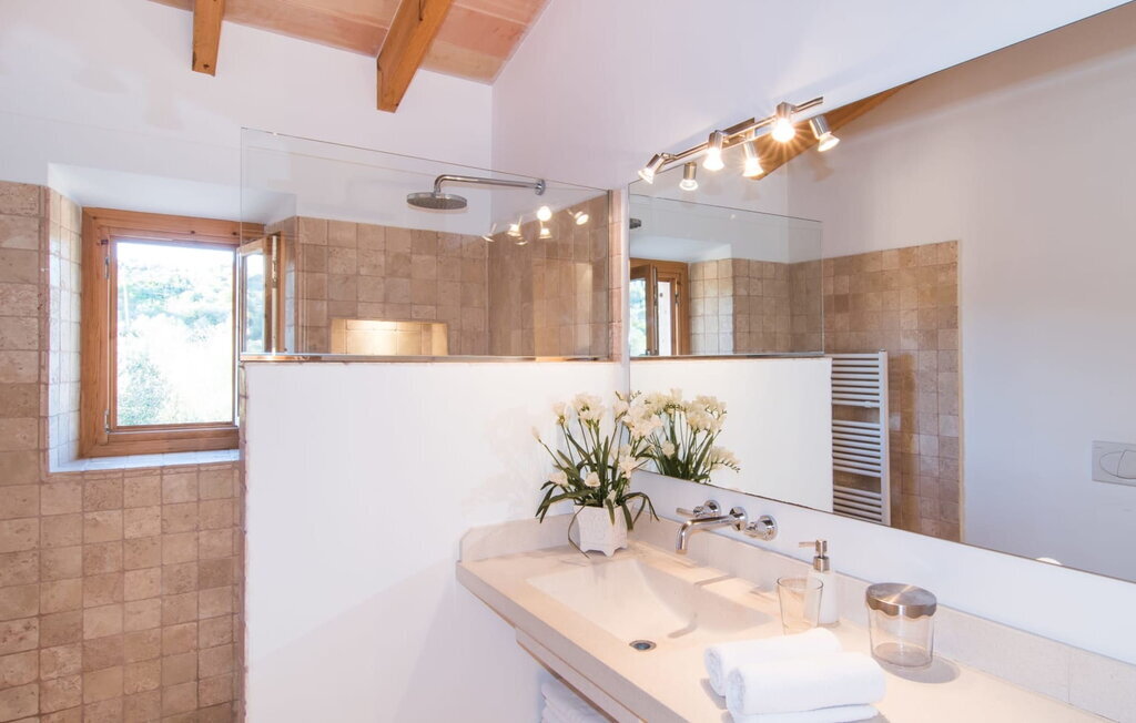La villa design Sa Figuera se trouve à environ 4 km de la côte est, dans le quartier de Sant Llorenç des Cardassar. Ce petit village d'environ 1100 habitants à l'ambiance rurale s'étend sur de petites collines au milieu d'oliviers et d'amandiers. En direction de la mer, vous pouvez visiter Sa Coma, Porto Cristo et le centre touristique de Cala Millor (à seulement 5 minutes en voiture) avec sa plage très appréciée. Plus à l'intérieur des terres, la ville perlière de Manacor vous attend avec ses magnifiques maisons patriciennes et les vestiges d'anciens moulins à vent. Dans les deux directions, vous trouverez des magasins, des restaurants, des cafés et des bars.