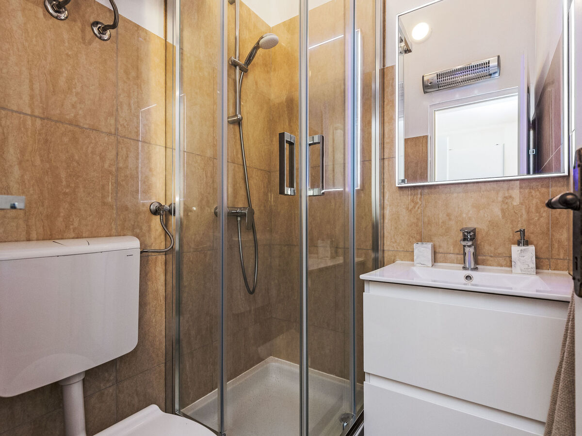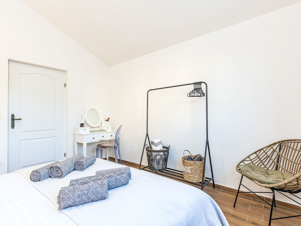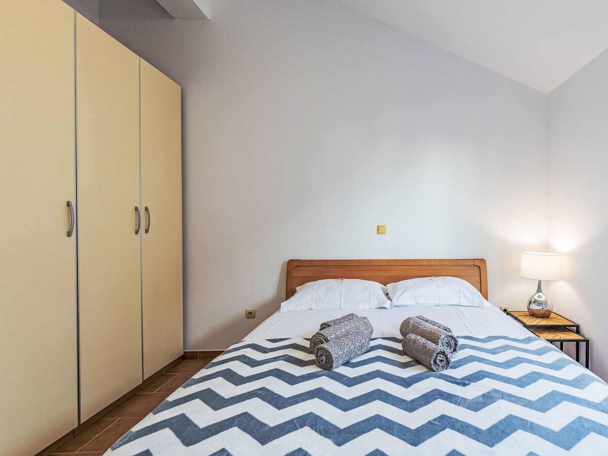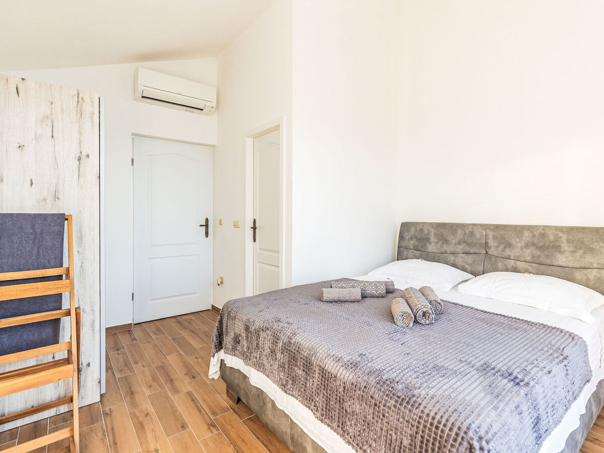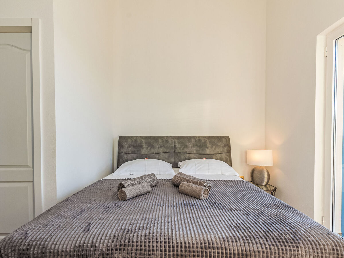 1 chambre avec 1 grand-lit (160 cm, longueur 200 cm), douche/WC et air-conditionné.