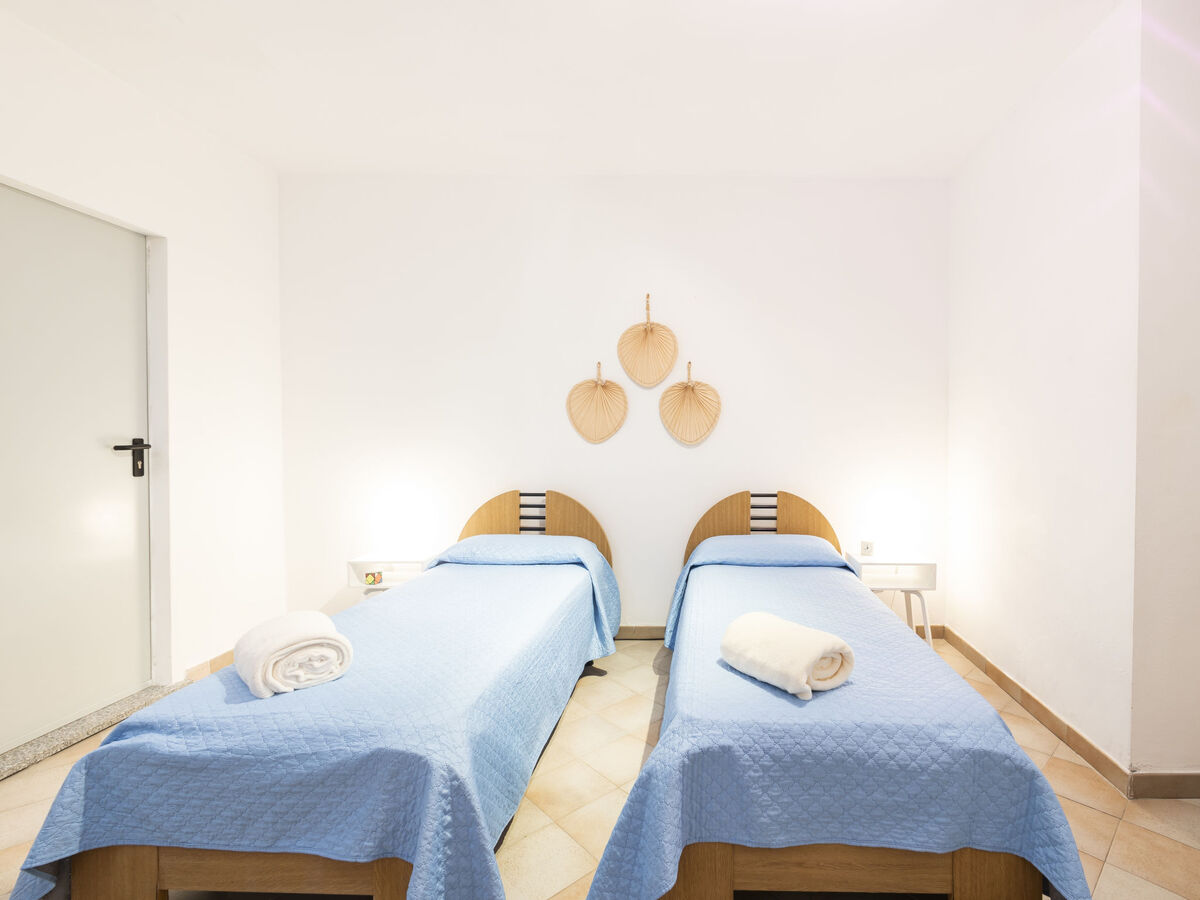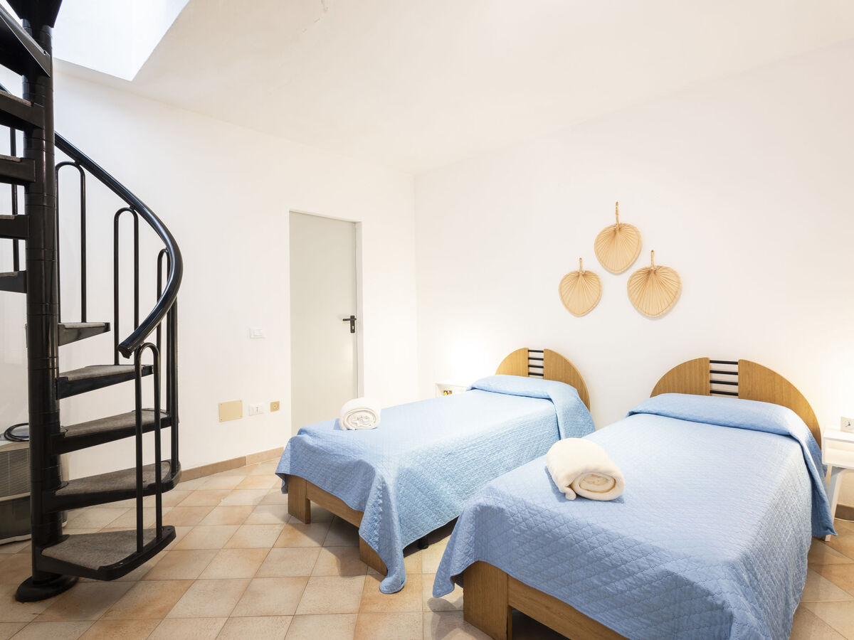 À l'étage inférieur: (escalier en colimaçon) 1 chambre avec 2 lits (80 cm, longueur 200 cm), TV (satellite).