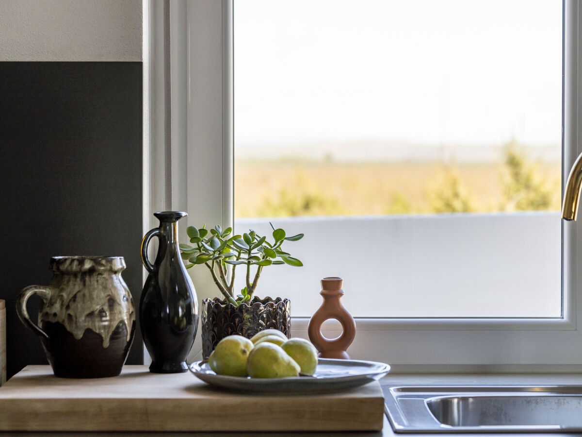 Cuisine ouverte (four, lave-vaisselle, 2 plaques vitrocéramiques, 2 feux, bouilloire électrique, micro-ondes, congélateur, cafetière électrique).