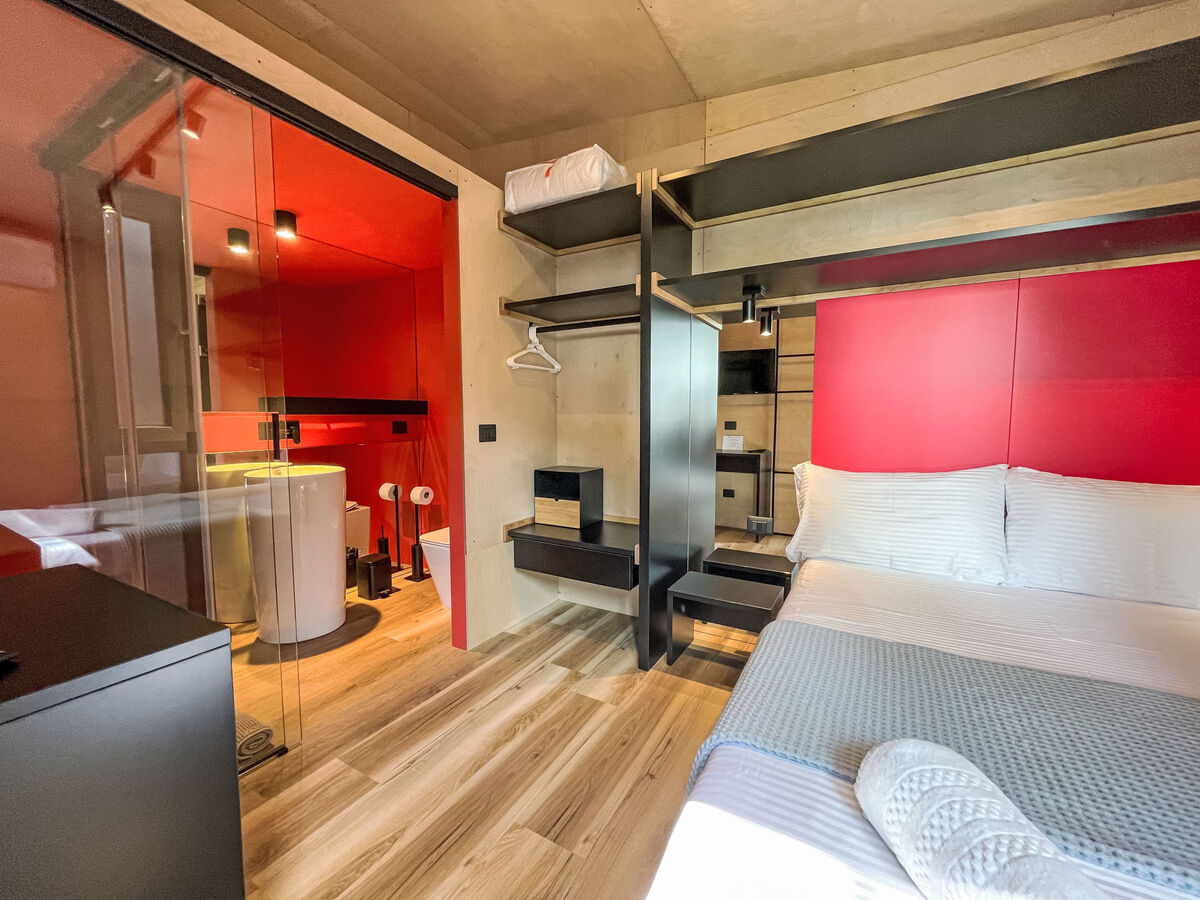 1 chambre avec 1 grand-lit (140 cm), douche/WC.