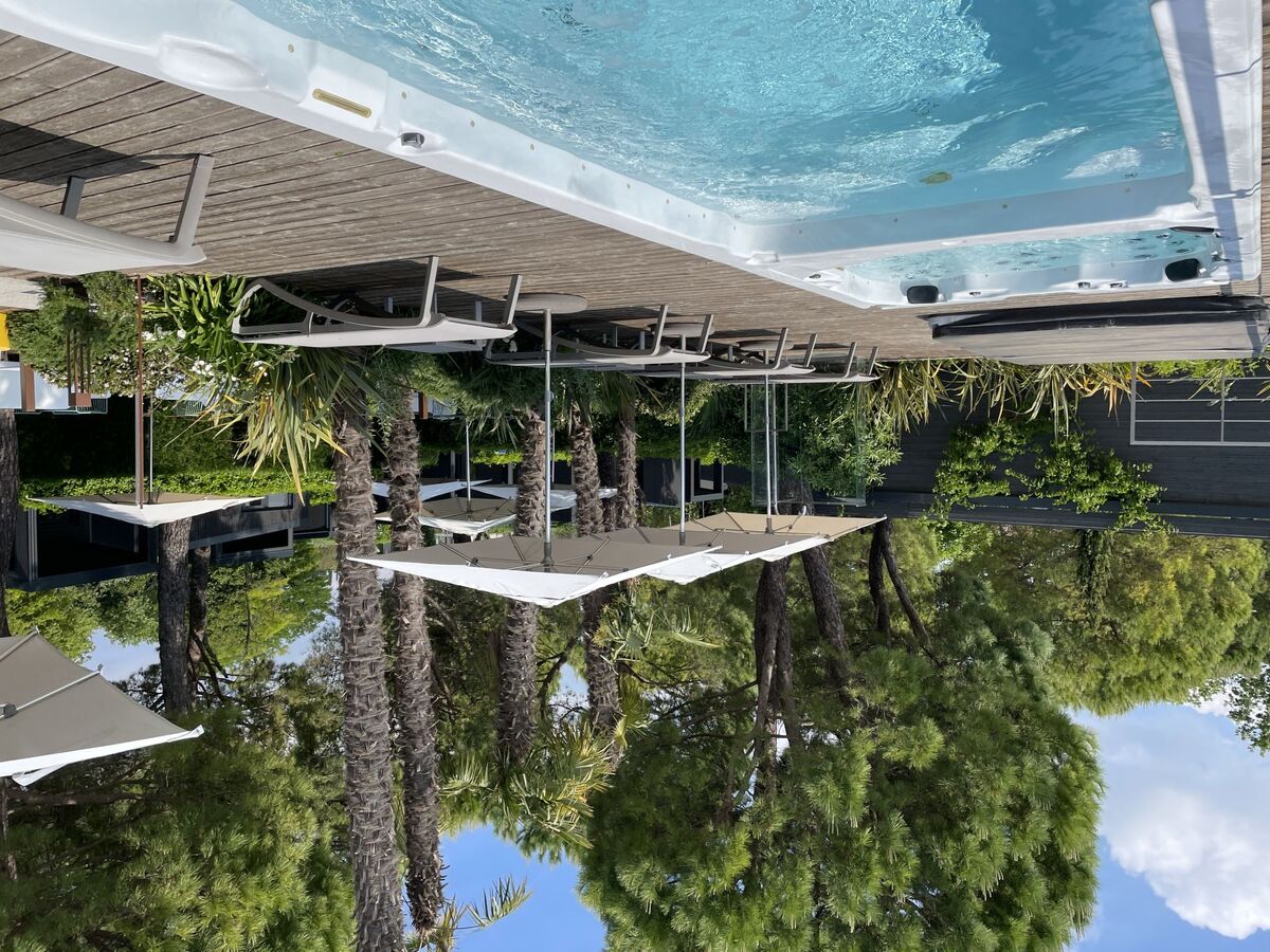 Bain à remous , ping-pong, terrasse, meubles de jardin, espace de jeux pour les enfants.