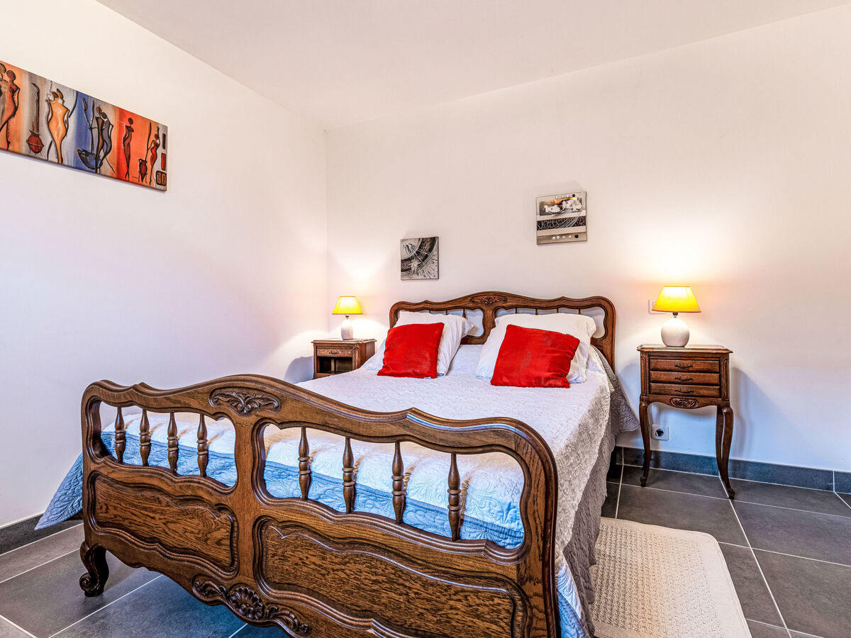 À l'étage inférieur: 1 chambre avec 1 grand-lit (140 cm, longueur 190 cm).