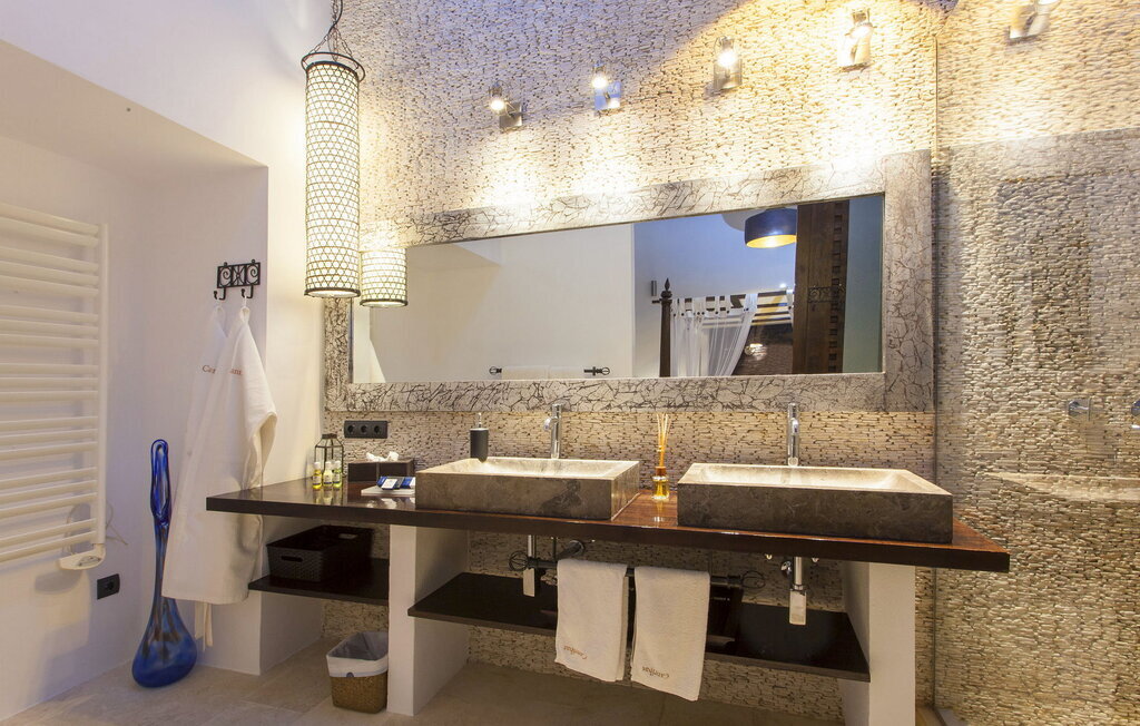 Dépendance : au rez-de-chaussée se trouve une chambre double avec salle de bain en-suite et une petite terrasse. Au premier étage se trouve une autre chambre double avec salle de bain en-suite. Il y a un coffre-fort dans toutes les chambres.