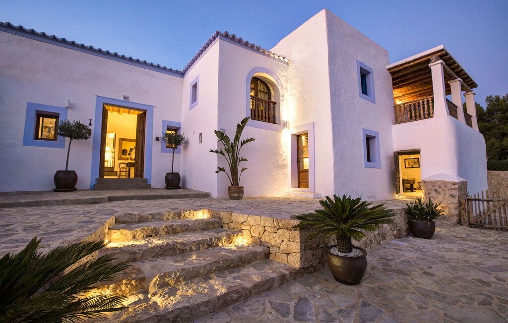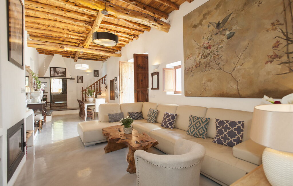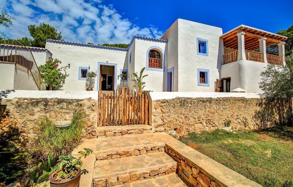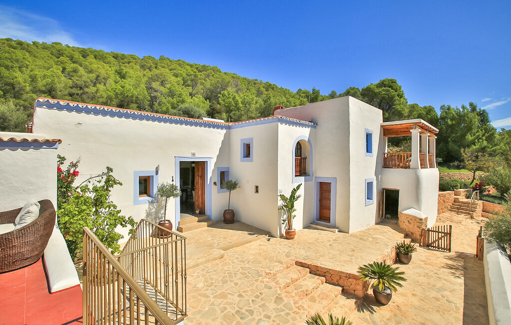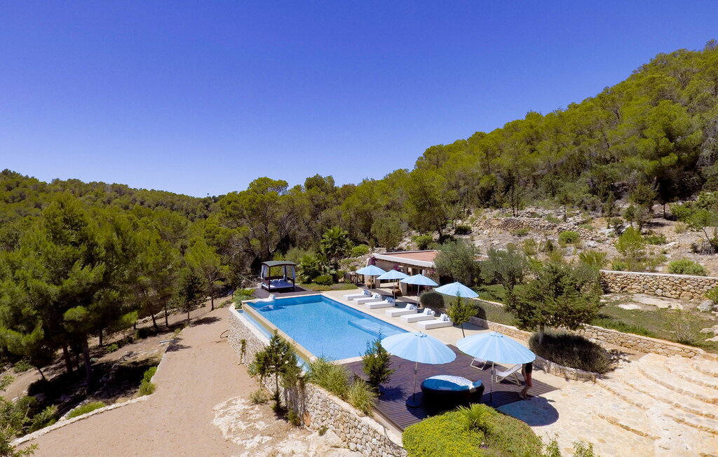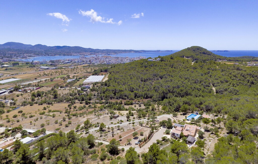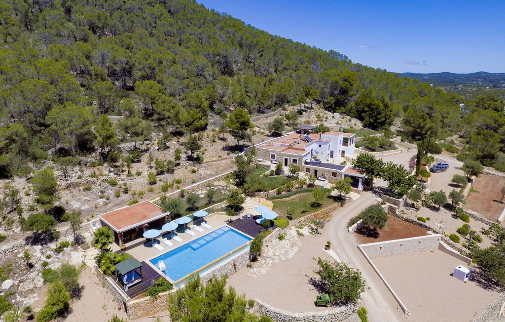 Nichée au sommet d'une colline, cette finca magnifiquement rénovée, vieille de 350 ans, offre calme et intimité au cœur de la campagne paisible d'Ibiza. Classée comme maison de valeur architecturale, elle présente des matériaux traditionnels comme le bois de genévrier et d'épais murs de pierre blanchis à la chaux, tout en offrant un confort moderne. Entourée d'une luxuriante forêt de pins et située sur un terrain de 120.000 m², la finca offre une large vue sur la mer, sur la baie de San Antonio et sur les collines de San Jose.