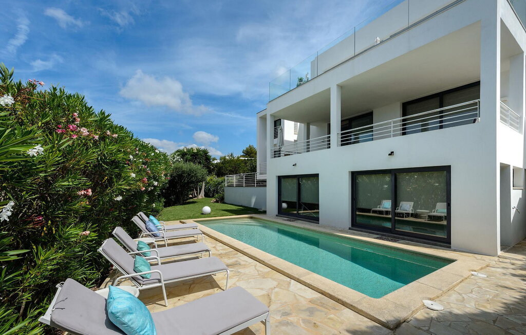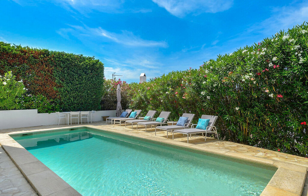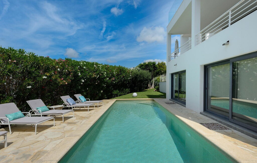 À l'extérieur, la villa dispose d'une piscine de 9x4 m entourée de chaises longues, d'un petit jardin gazonné et d'un espace barbecue, parfait pour se détendre et manger en plein air. Des places de parking privées et couvertes sont à votre disposition.