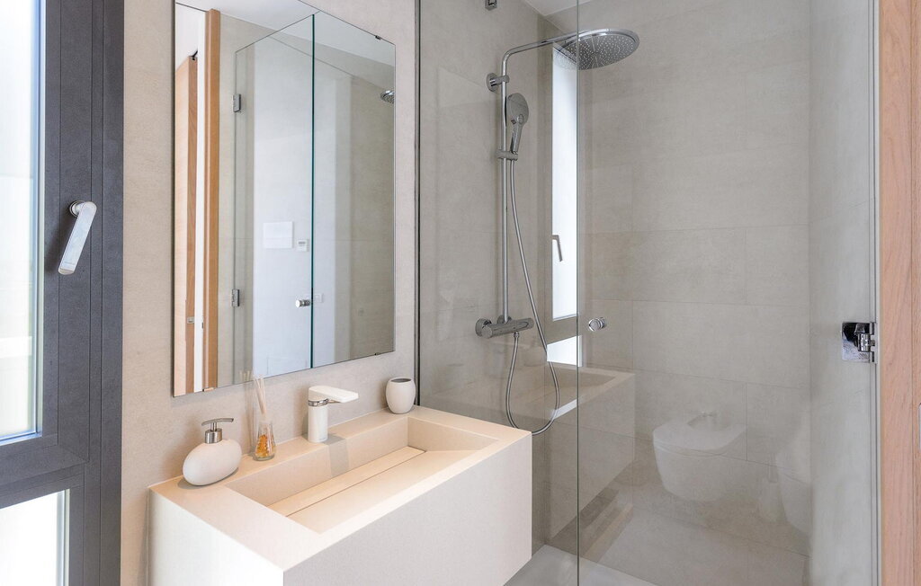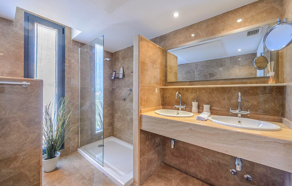 Au dernier étage se trouve la chambre principale avec un lit de 2x2 m, une terrasse privée et une salle de bain privée avec douche. Il y a également une chambre double avec un lit de 1,80x2 m, une salle de bain privée avec douche et un espace bureau avec une salle de bain supplémentaire avec douche.