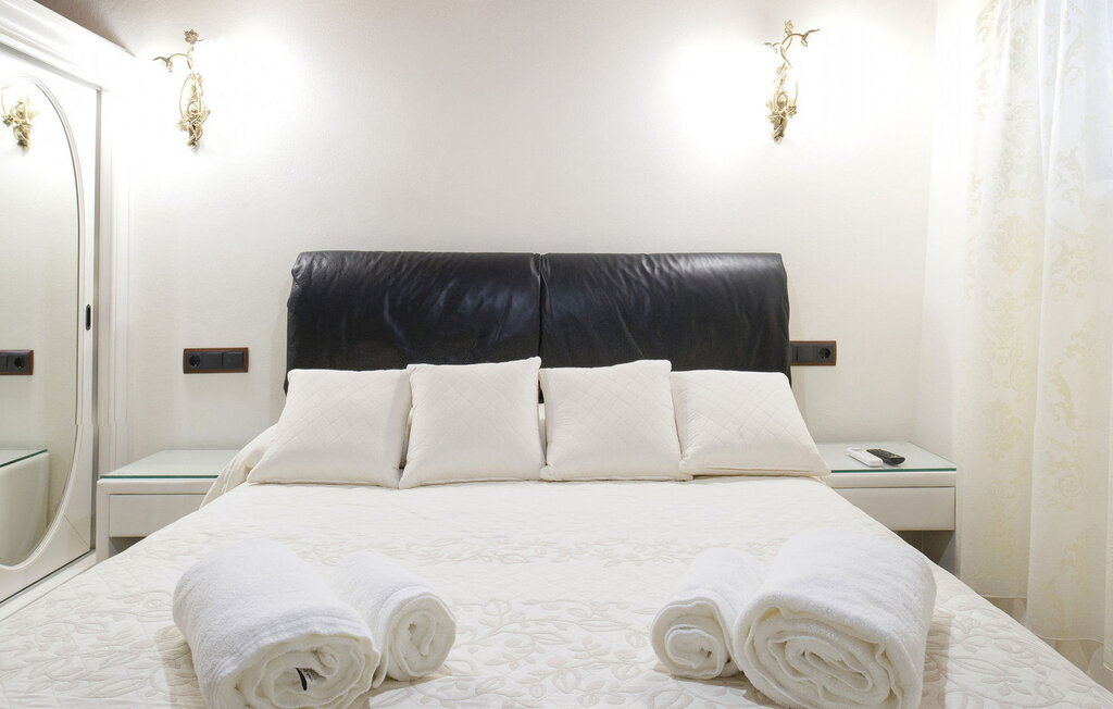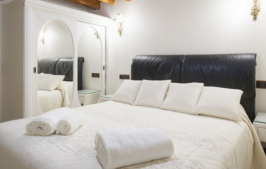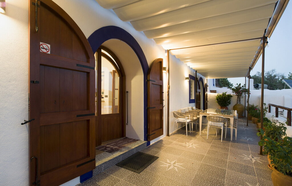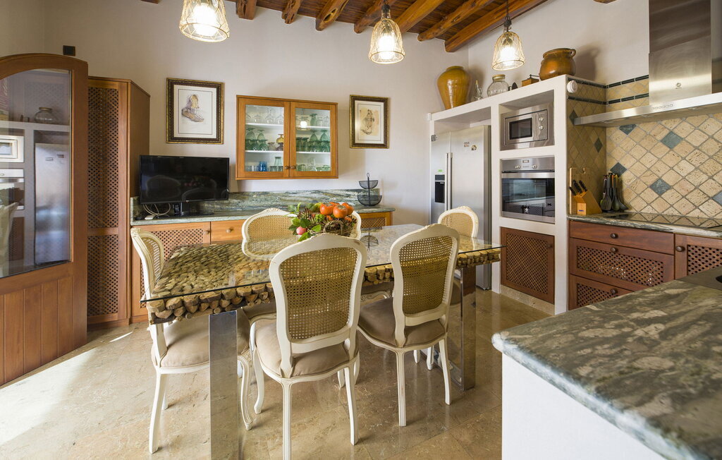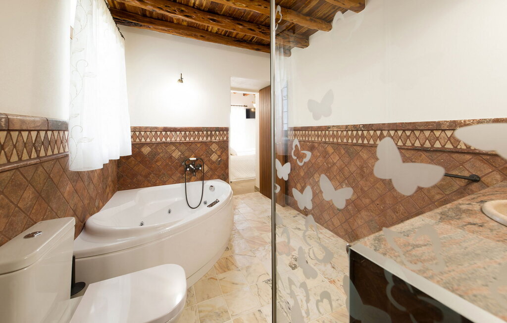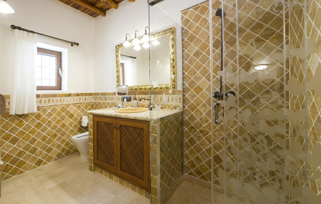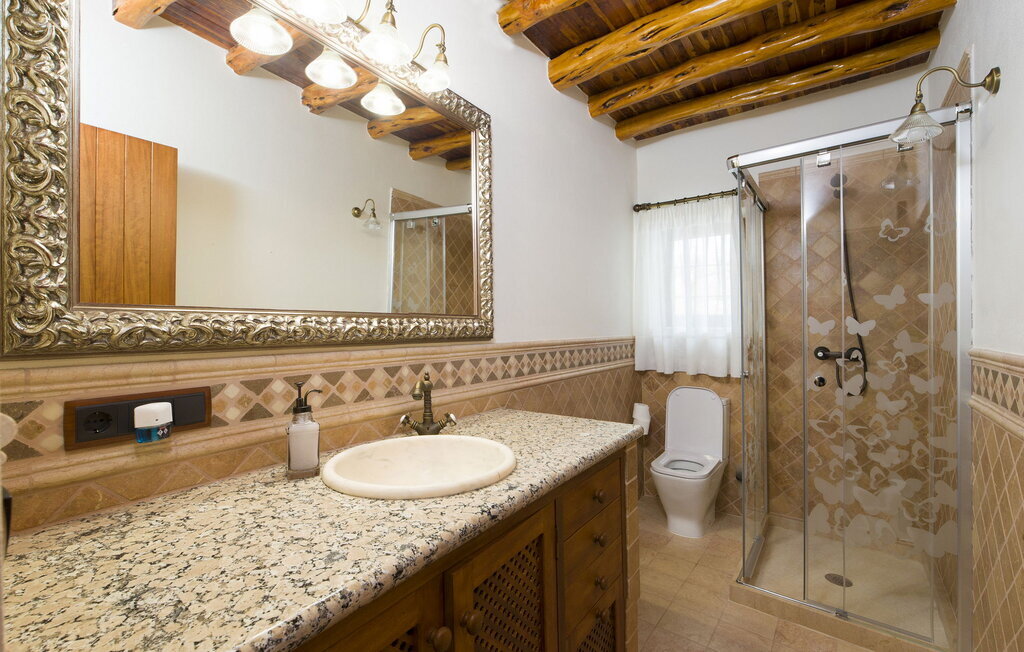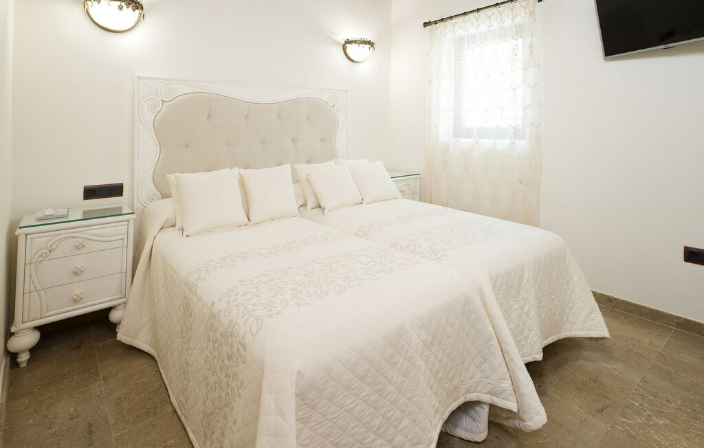 La maison dispose de quatre chambres et de trois salles de bains, toutes avec douche, dont une avec une baignoire à remous. Deux des salles de bains sont en-suite et se trouvent au premier étage. Toutes les chambres sont équipées de la climatisation et de la télévision par satellite. Deux chambres à coucher disposent de deux lits simples (200x90 cm), tandis que les deux autres sont des chambres doubles (200x150 cm).