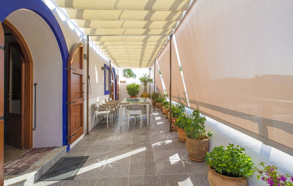 La maison dispose d'une charmante terrasse à l'avant, accessible aussi bien de la cuisine que du salon. La cuisine entièrement équipée dispose d'une table pour six personnes. À l'intérieur, le salon tout en longueur offre un petit canapé avec télévision par satellite et une table à manger pour huit personnes et donne accès aux quatre chambres.