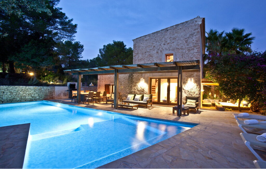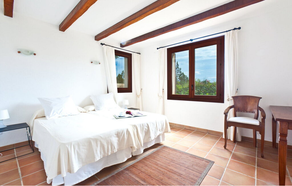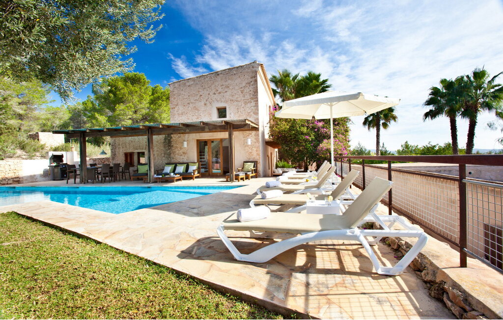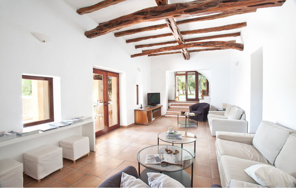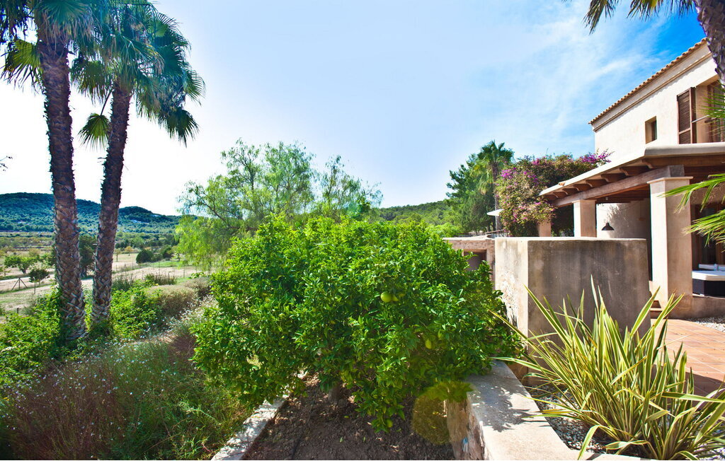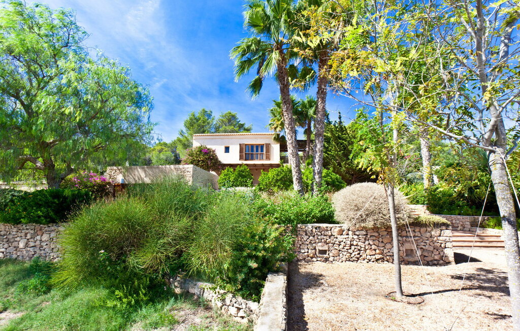 Belle villa de 430 m2 entièrement clôturée, construite sur un terrain de 10.000 m2 dans le plus pur style ibicenco, à quelques kilomètres de la plage de Cala Bassa et à proximité des plages de Cala Conta, Cala Tarida et Port des Torrent.