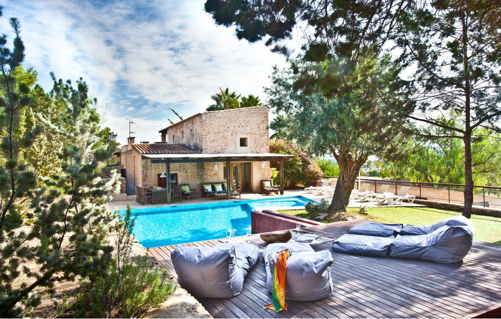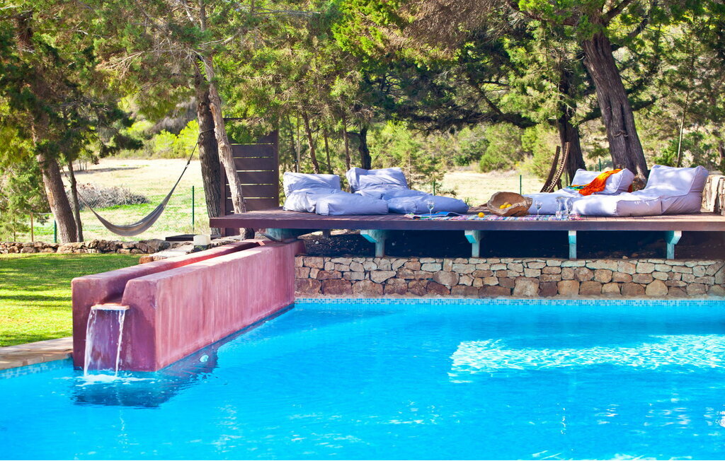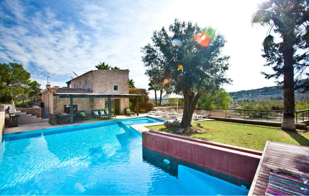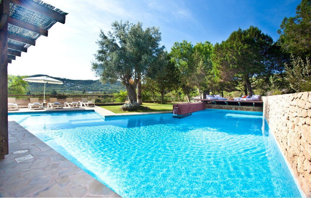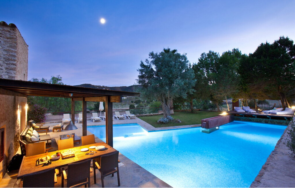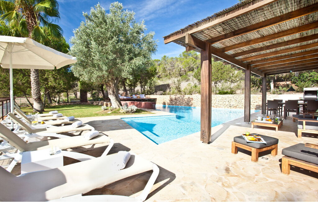 Belle villa de 430 m2 entièrement clôturée, construite sur un terrain de 10.000 m2 dans le plus pur style ibicenco, à quelques kilomètres de la plage de Cala Bassa et à proximité des plages de Cala Conta, Cala Tarida et Port des Torrent.