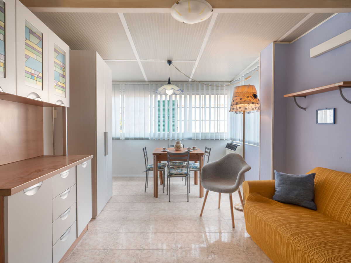 Aménagement fonctionnel: séjour/salle à manger avec 1 divan-lit, WC séparés et TV.