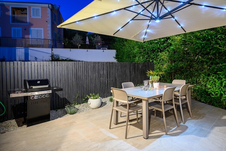 La villa à Rojci possède 2 chambre(s) et Capacité pour 6 personnes. Logement de 110 m² moderne, avec vue sur le jardin et la piscine. La location se trouve à 10 m de la ville "Porec", 61 m de la gare "Pula train station", 350 m du super-marché "Grocery store Kovaci", 650 m du restaurant "Restaurant Zardin", 10 km de la plage de sable "Marea Beach", 10 km de la plage de roche, 10 km de la bus station "Bus station Porec", 15 km du parc aquatique "Aquacolors Zelena Laguna", 18 km du parc d'attractions "Dino Park Funtana", 27 km de la rivière "River Mirna", 52 km du parc naturel "Fazana- Brijuni Islands", 61 km de l'aéroport "Pula airport" et il est situé dans une zone idéale pour familles zone et dans la zone urbaine. Elle dispose de jardin, mobilier de jardin, clôture, 20 m² de terrasse, lave-linge, barbecue, fer à repasser, accès internet (wifi), sèche-cheveux, balcon, chauffage pompe à chaleur, climatisation dans tout le logement, piscine privée, parking extérieur même bâtiment, 2 Télévisions, tv satellite (Langues: Anglais, Allemand), radio. La cuisine américaine, Électrique, est équipée avec réfrigérateur, micro-ondes, four, congélateur, lave-vaisselle, vaisselle/couverts, ustensiles/cuisine, cafetière, grille pain et bouilloire.