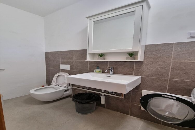 La villa à Višnjan possède 3 chambre(s) et Capacité pour 7 personnes. Logement de 150 m² confortable et totalement équipé, avec vue sur le jardin et la piscine. La location se trouve à 400 m du super-marché, 500 m de la ville "Višnjan", 15 km de la ville "Porec", 15 km de la bus station "bus station Porec", 16 km du parc aquatique "Aquacolors Porec", 16 km de la rivière "rijeka Mirna/ Quieto", 17 km de la plage de roche "Porec", 19 km du parc d'attractions "Dino Park Funtana", 22 km des thermes "Istarske Toplice/ Istrian Spa", 25 km de la gare "train station Pazin", 27 km du lac "accumulation lake Butoniga", 40 km du parc naturel "NP Brijuni", 55 km de l'aéroport "airport Pula", 84 km du parc naturel "PP Ucka", 155 km du parc naturel "NP Risnjak" et il est situé dans une zone idéale pour familles zone et rural. Elle dispose de jardin, mobilier de jardin, clôture, 10 m² de terrasse, lave-linge, barbecue, cheminée, fer à repasser, accès internet (wifi), sèche-cheveux, chauffage pompe à chaleur, climatisation, piscine privée, parking extérieur même bâtiment, 1 Télévision, tv satellite (Langues: Anglais, Allemand, Français). La cuisine américaine, Électrique, est équipée avec réfrigérateur, micro-ondes, four, congélateur, lave-vaisselle, vaisselle/couverts, ustensiles/cuisine, cafetière, grille pain et bouilloire.