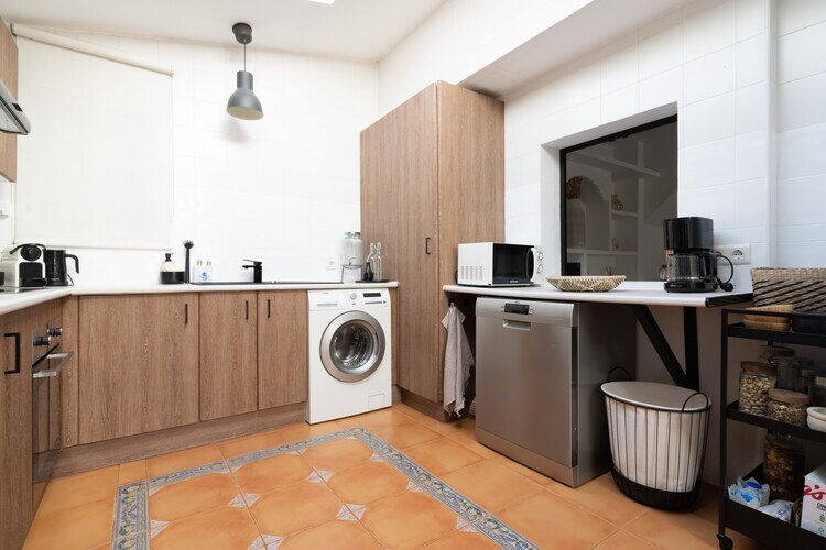 À l'intérieur, la maison est entièrement équipée de tout ce dont vous avez besoin pour un séjour sans tracas, y compris le chauffage central, la climatisation dans tout l'établissement et deux ventilateurs pour plus de confort. Le salon spacieux est équipé d'une télévision, de chaînes satellite en espagnol, anglais, allemand et français, d'une radio et d'une cheminée pour des soirées agréables. La cuisine ouverte est entièrement équipée avec une cuisinière à gaz, un réfrigérateur, un micro-ondes, un four, un congélateur, un lave-vaisselle et tous les ustensiles de cuisine nécessaires, y compris une machine à café, un grille-pain, une bouilloire et un presse-agrumes. Pour plus de commodité, la maison comprend également un lave-linge, un fer à repasser et un sèche-cheveux.