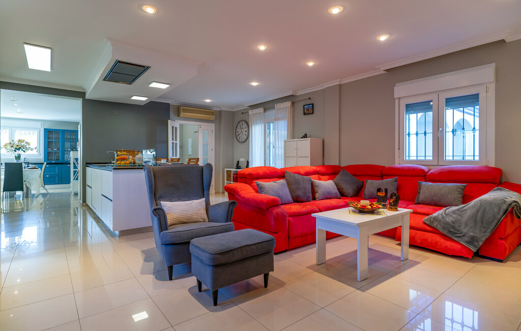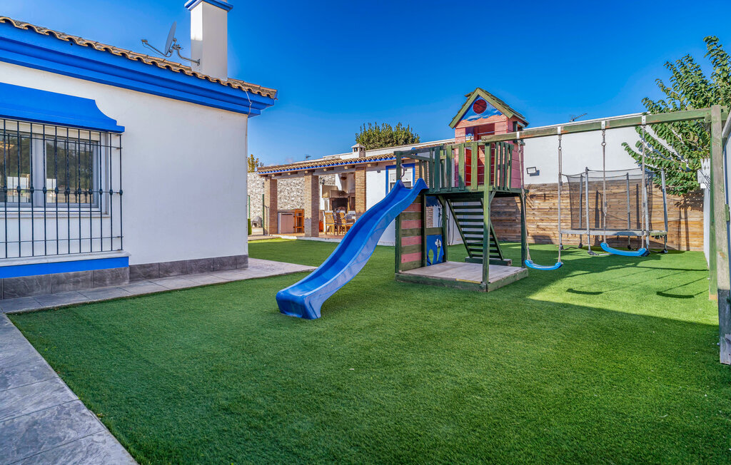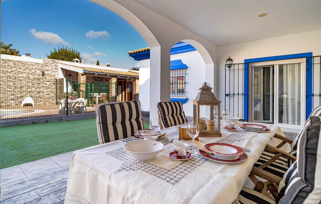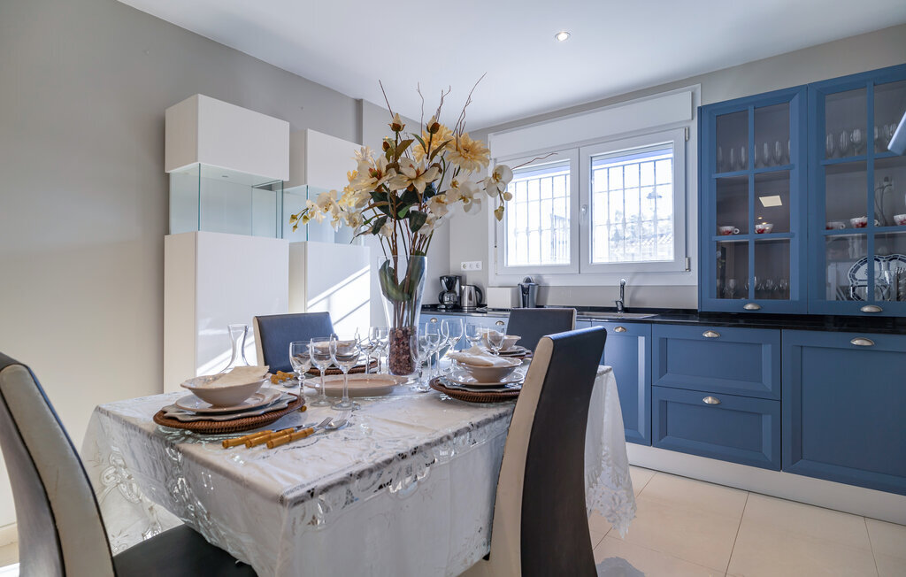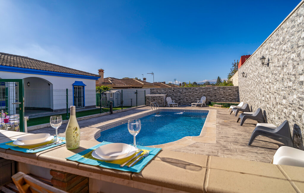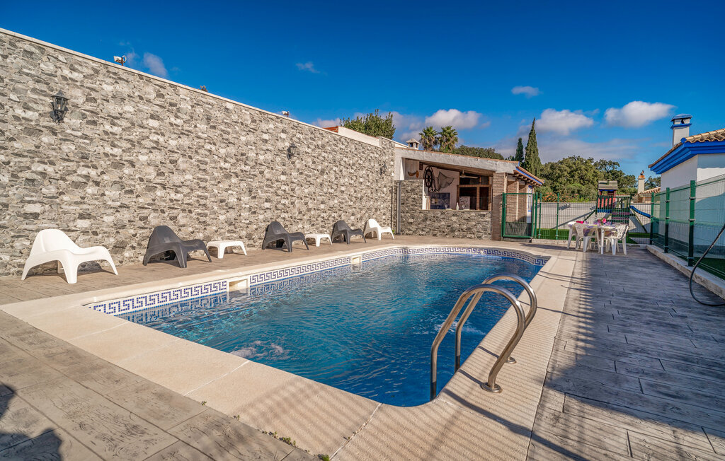 Cette maison de vacances à Los Barrios, aménagée avec goût et de grande qualité, est un lieu de retraite parfait pour ceux qui cherchent à se reposer. L'aménagement coloré et affectueux crée une atmosphère chaleureuse, tandis que le poêle à bois dans le salon assure le confort. Sur deux étages, vous trouverez beaucoup de place pour vous sentir à l'aise en famille ou entre amis. La vaste véranda vous invite à passer des heures de détente à l'ombre, tandis que l'espace piscine clôturé avec terrasse est l'endroit idéal pour prendre un bain de soleil et se rafraîchir - un lieu fait pour la détente et le bien-être.