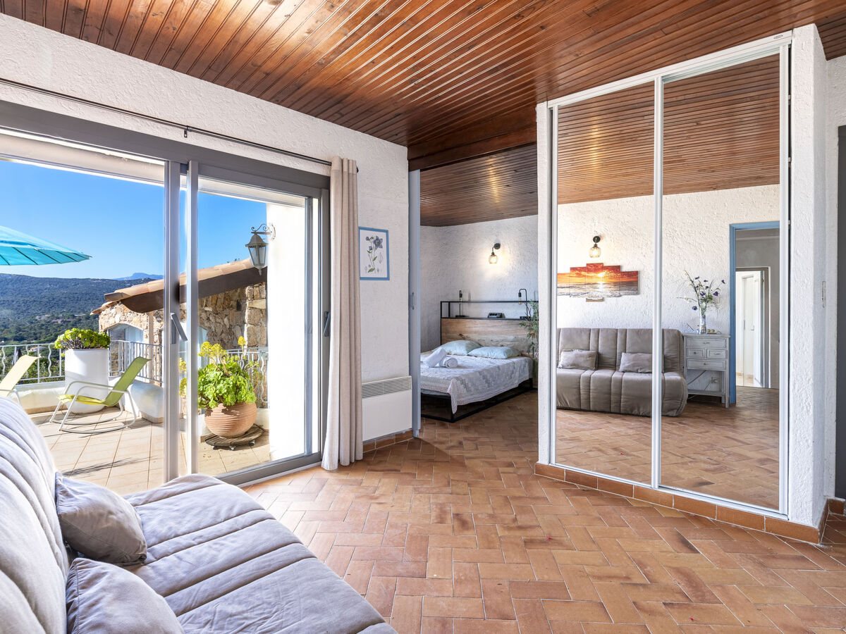 Sortie sur la terrasse, sur la piscine.