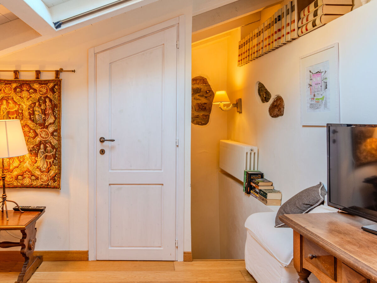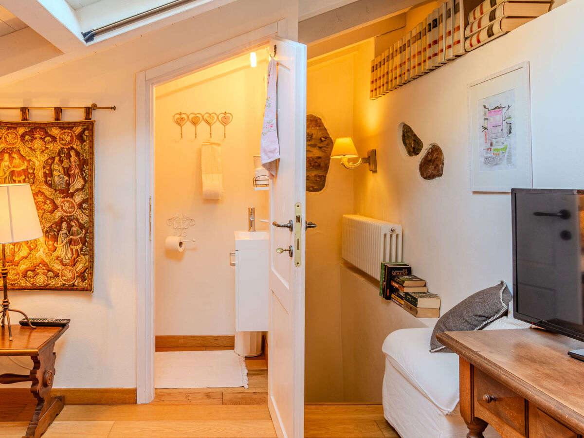 2ème étage: séjour/chambre à coucher ouvert avec 1 divan-lit (140 cm), TV (écran plat).
