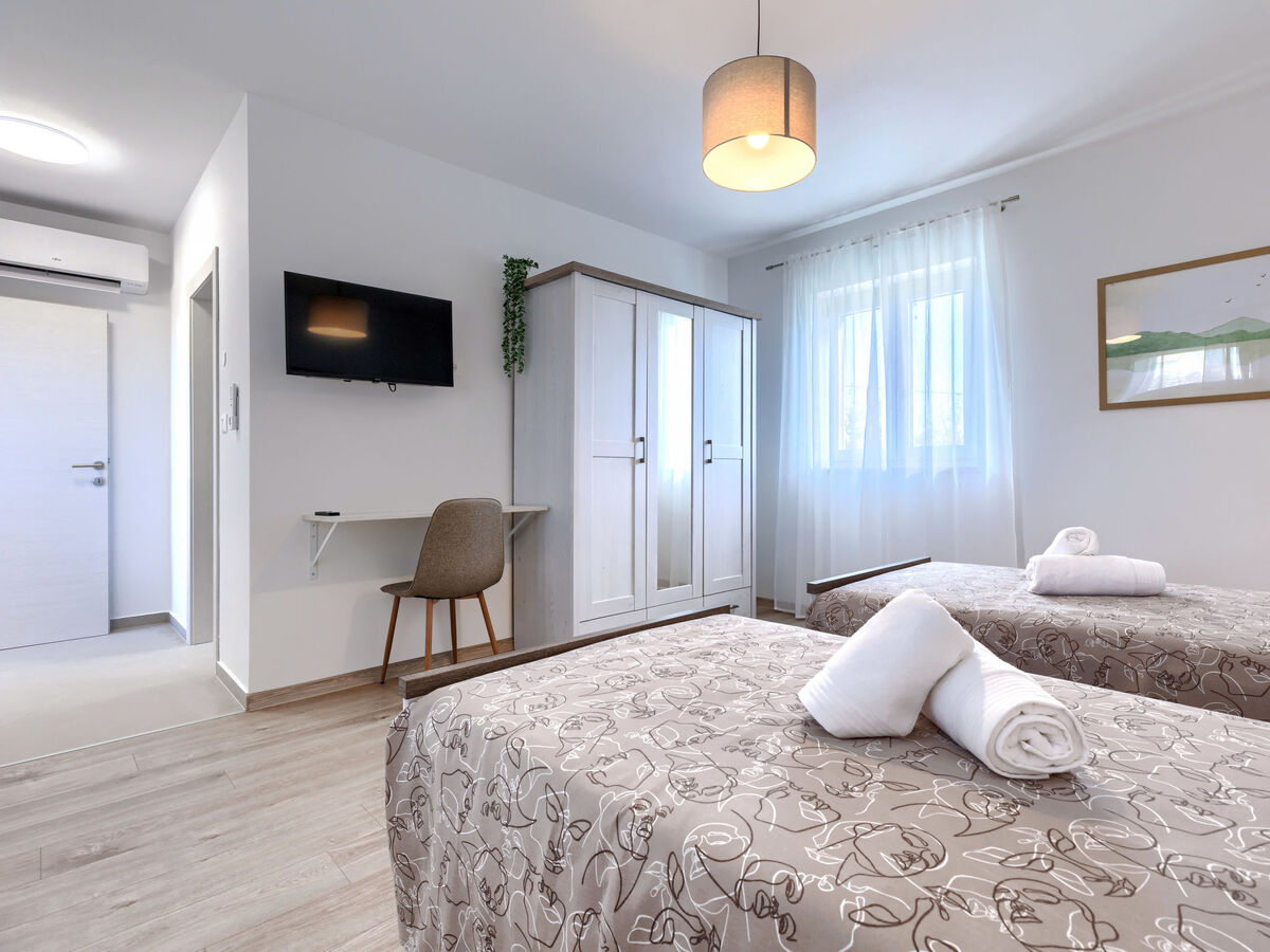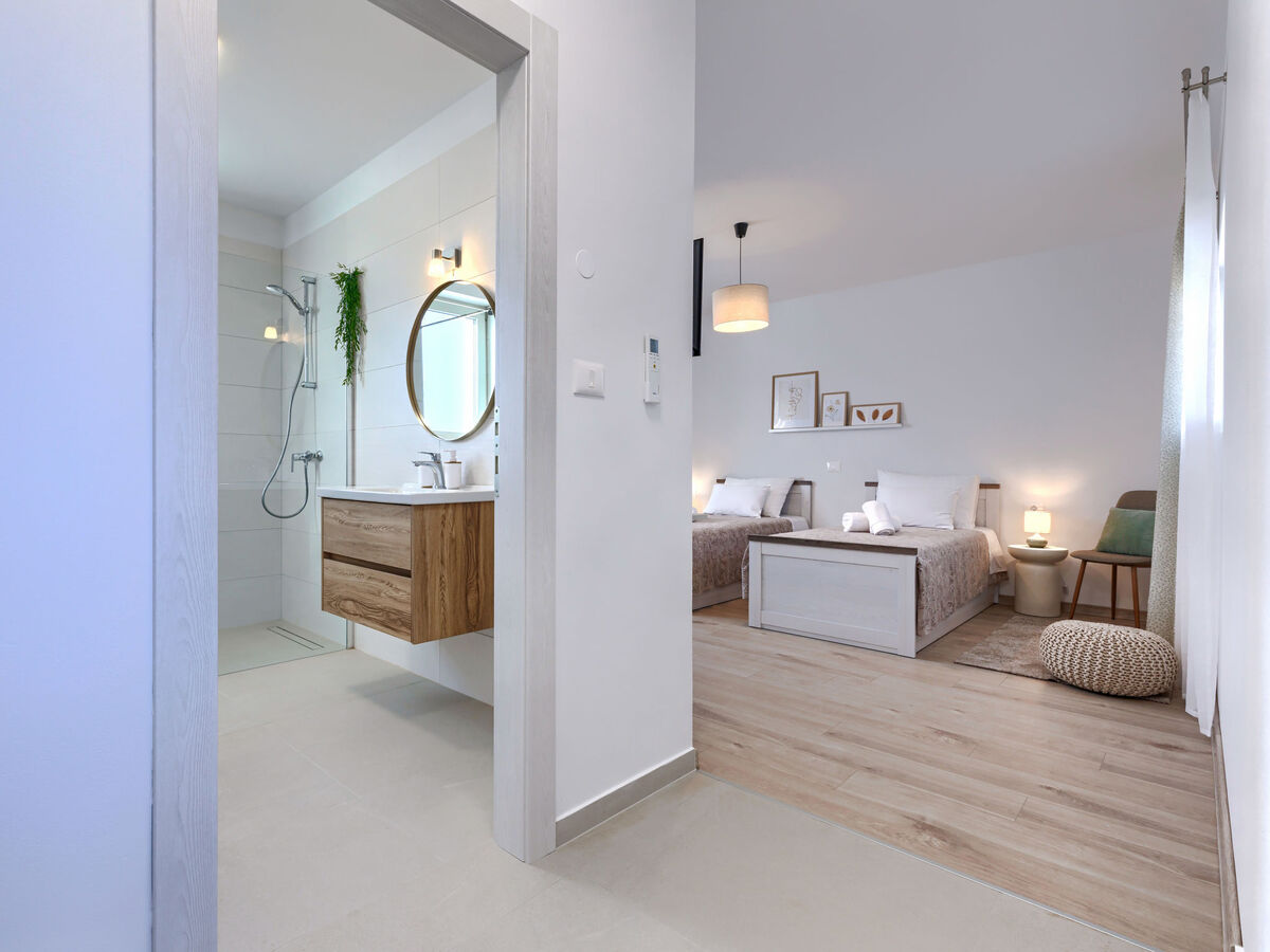 1 chambre avec 2 lits (90 cm, longueur 200 cm), douche/WC et air-conditionné.