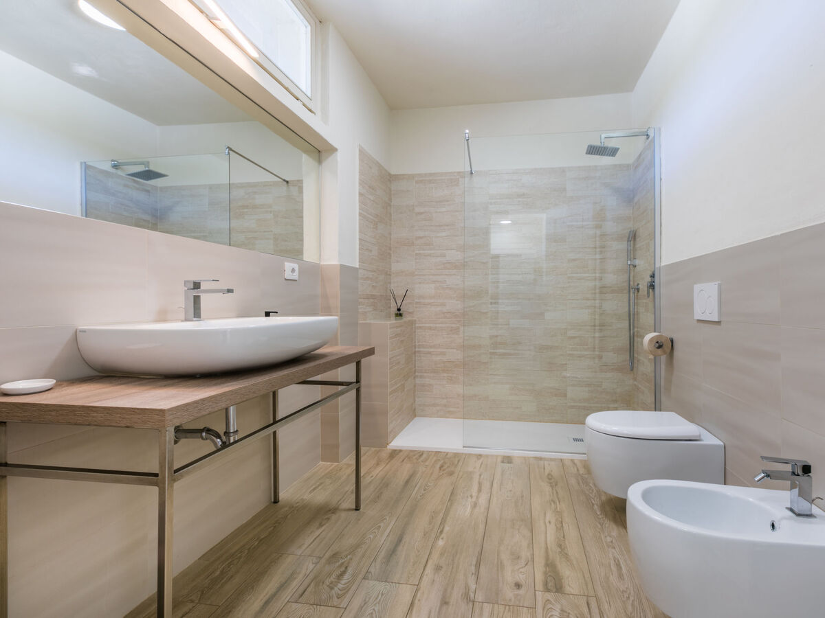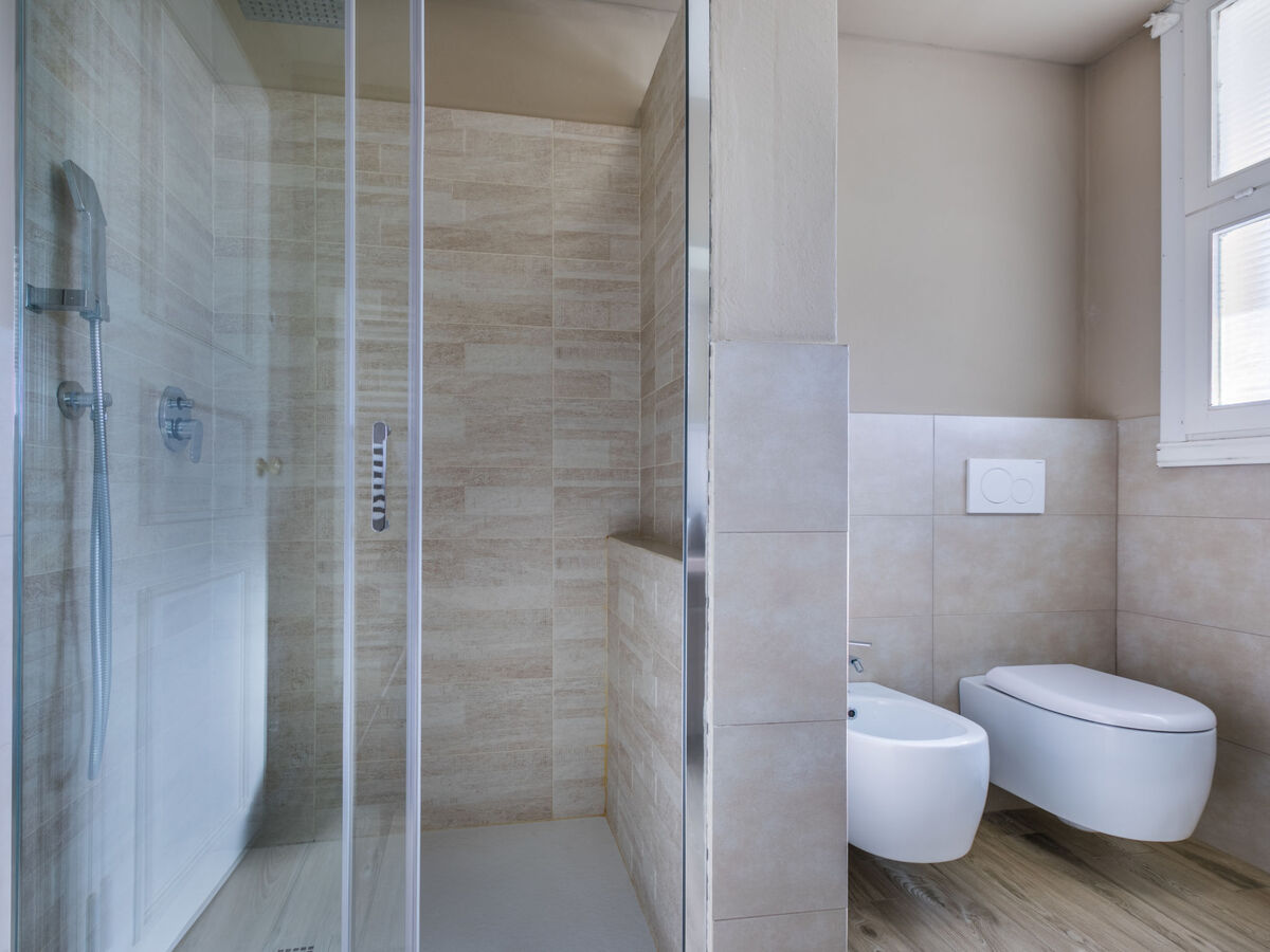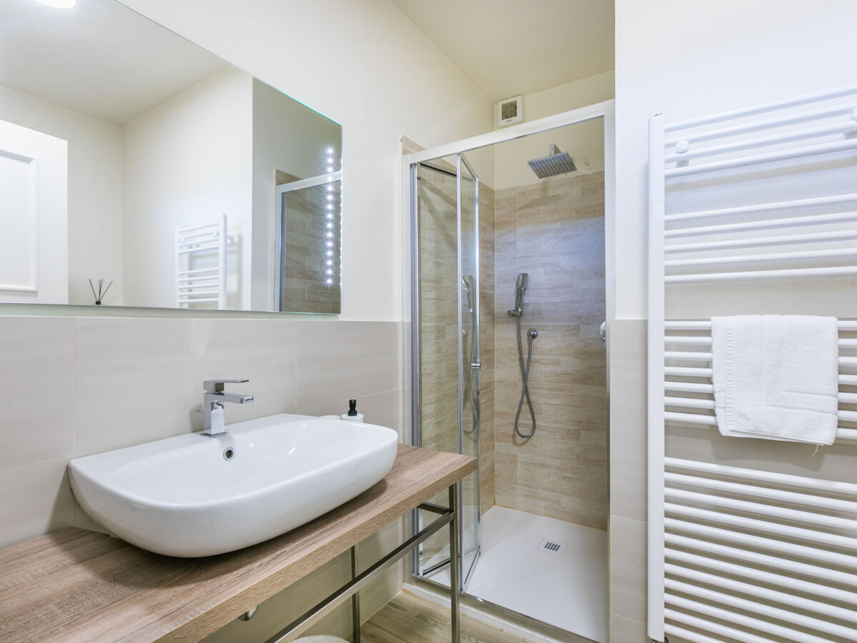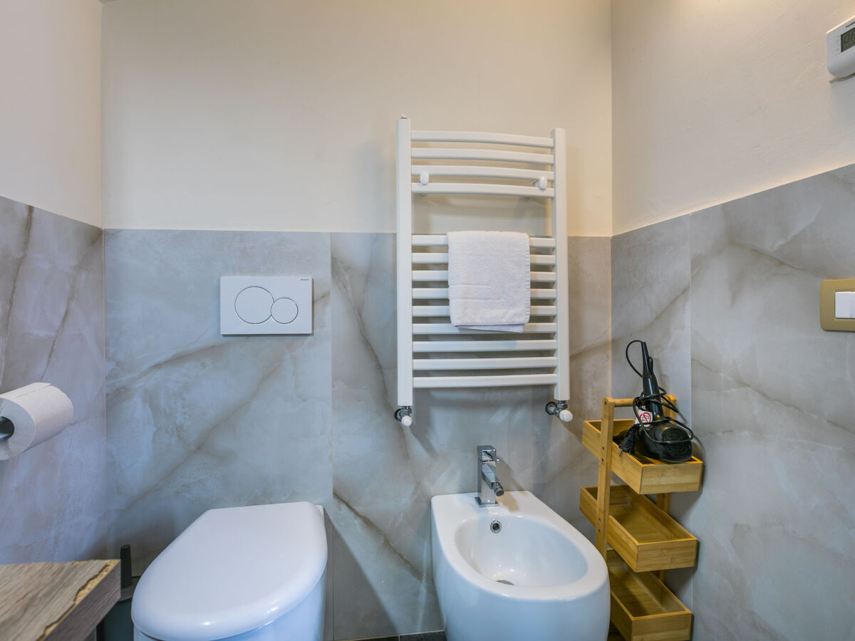 1 chambre double avec douche/bidet/WC, air-conditionné et chauffage à air chaud.