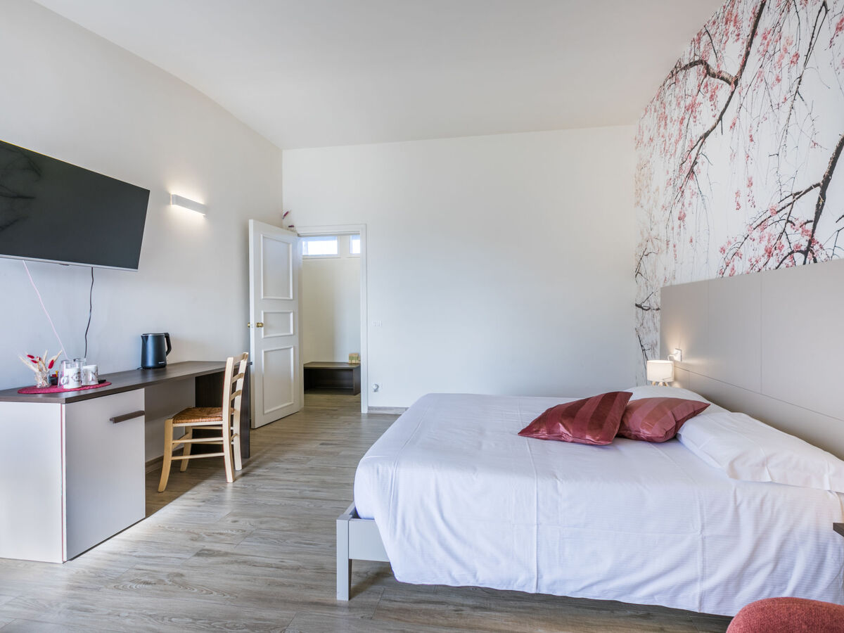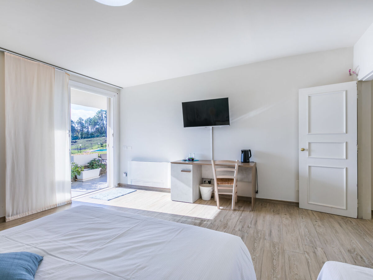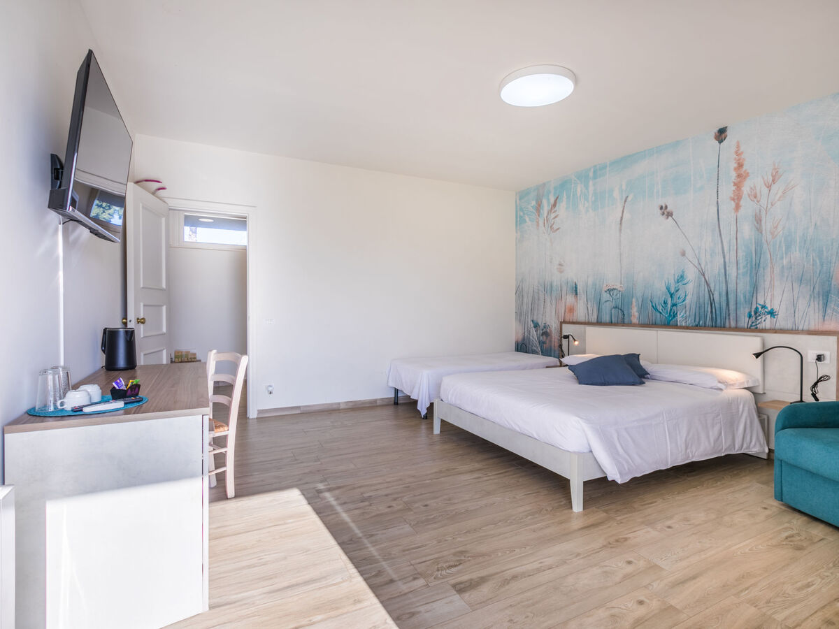 1 chambre avec 1 divan-lit double, 1 lit double, douche/bidet/WC, TV (satellite), air-conditionné et chauffage à air chaud.