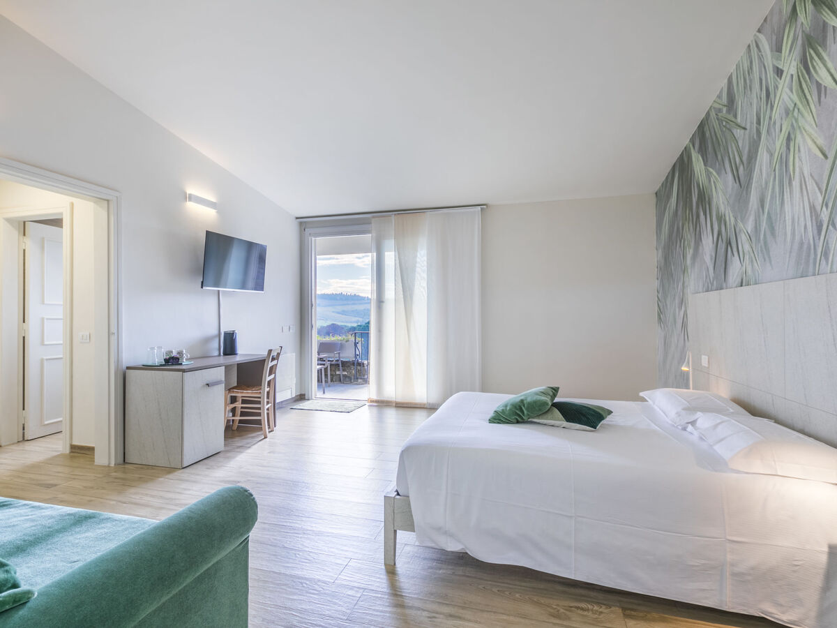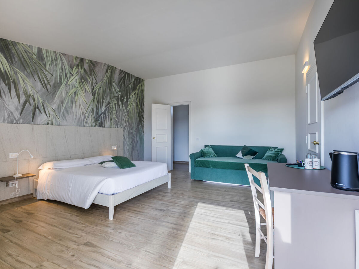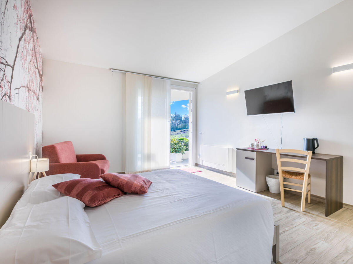 1 chambre avec 1 divan-lit double, 1 lit double, douche/bidet/WC, TV (satellite), air-conditionné et chauffage à air chaud.