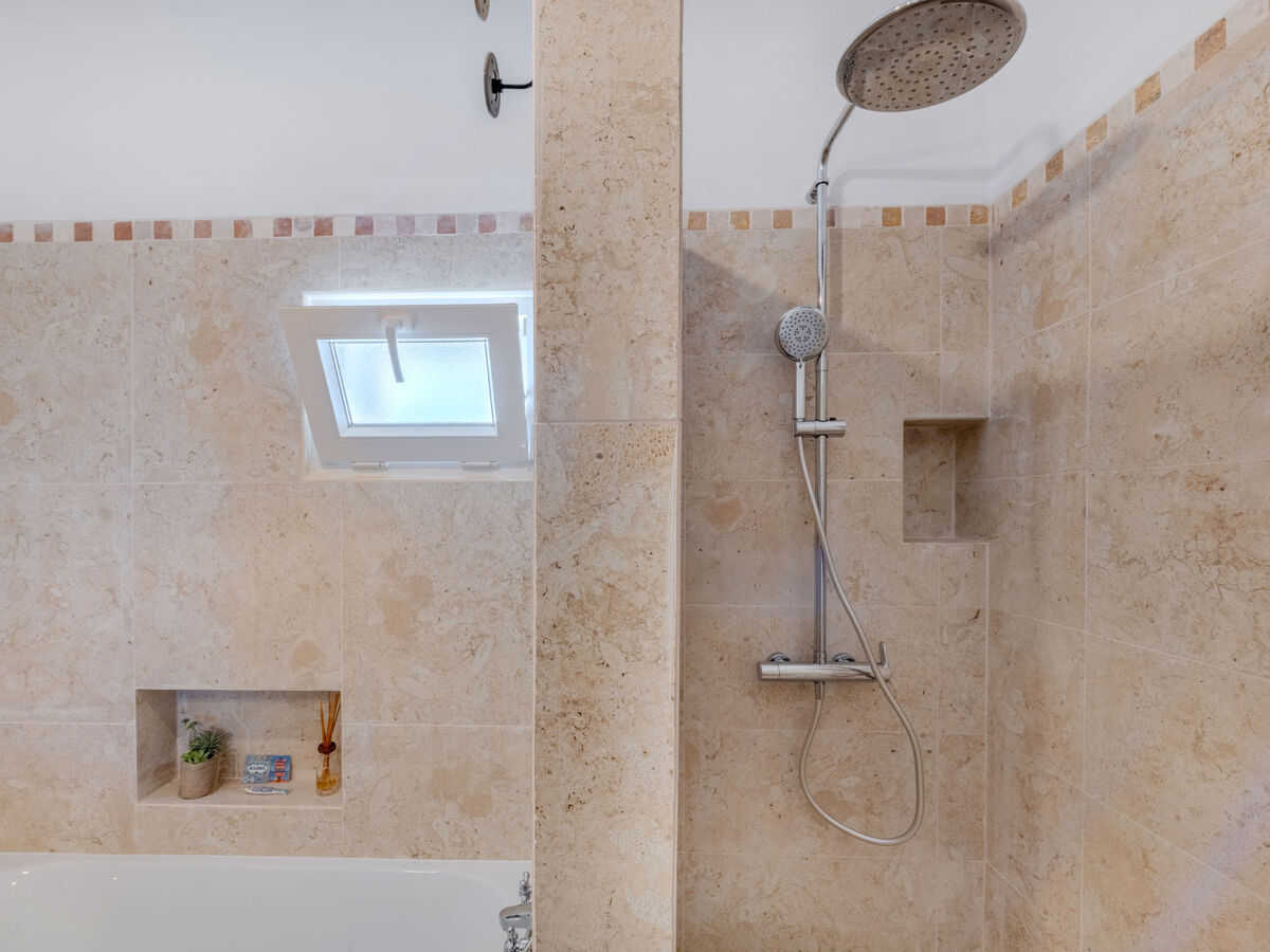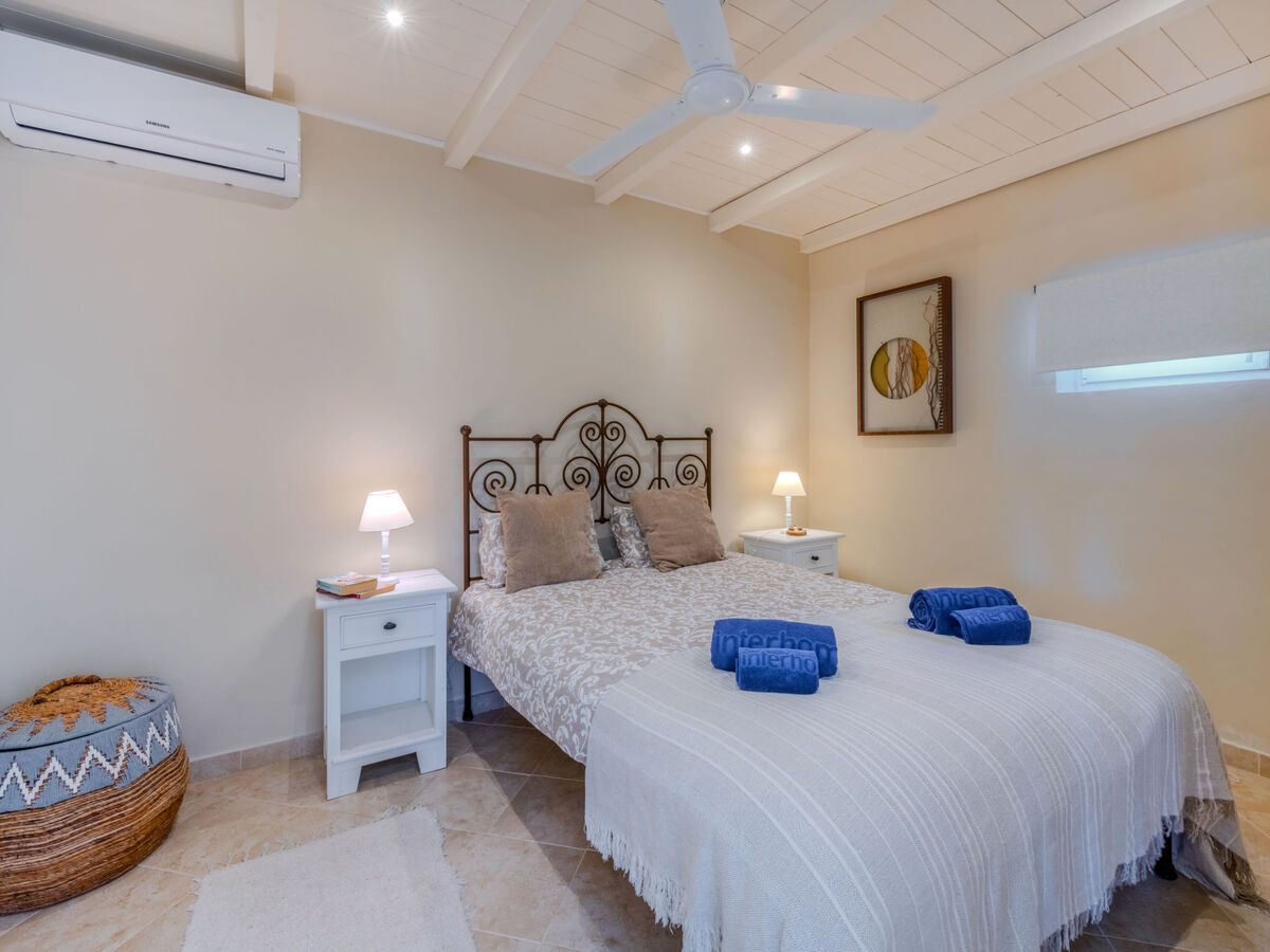 1 chambre avec Dressing avec 1 lit double (160 cm, longueur 200 cm), bain/douche/WC, air-conditionné et chauffage à air chaud.