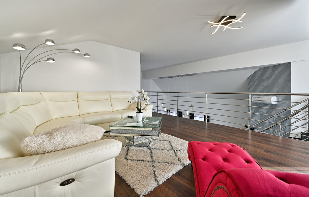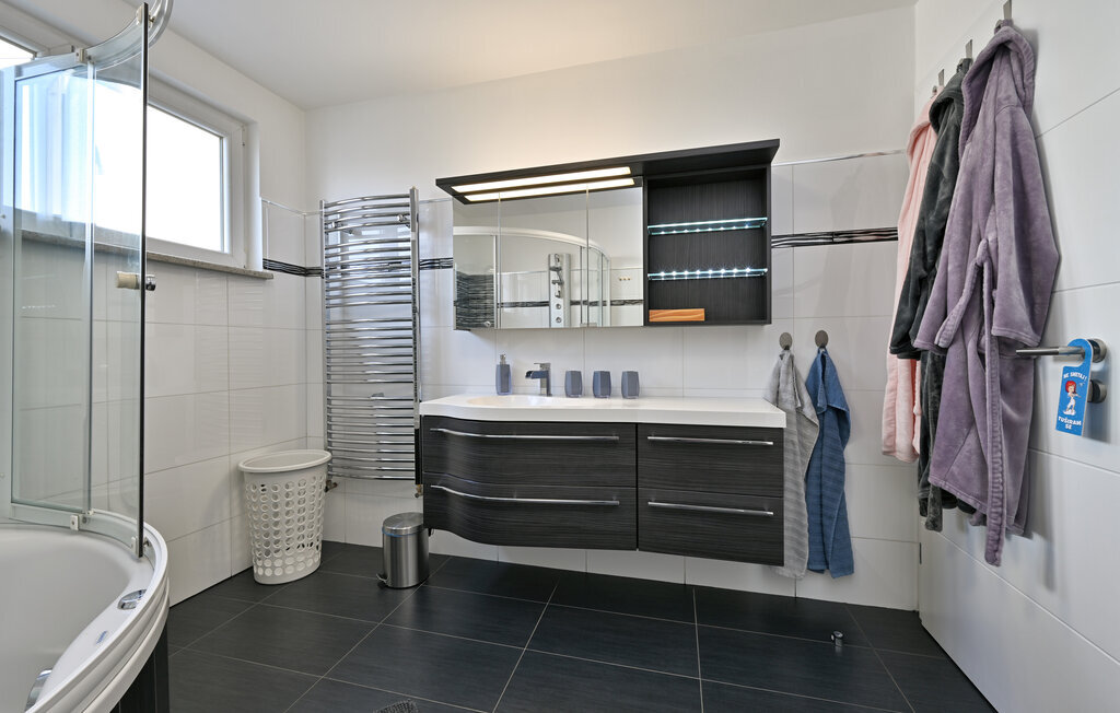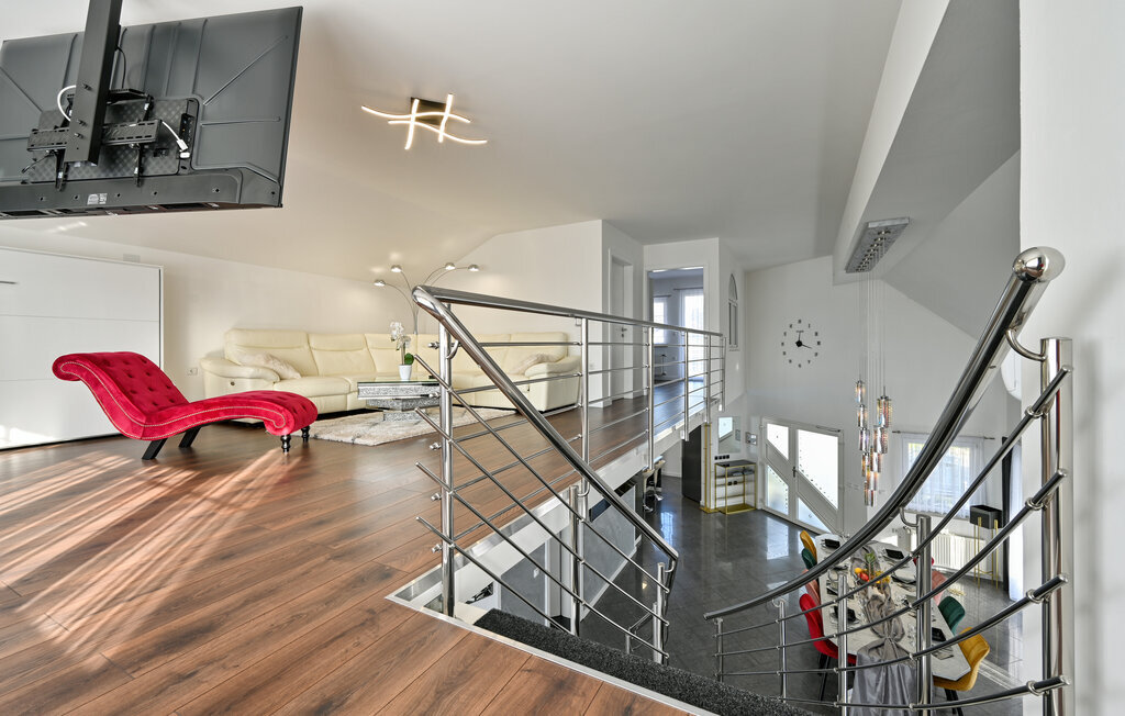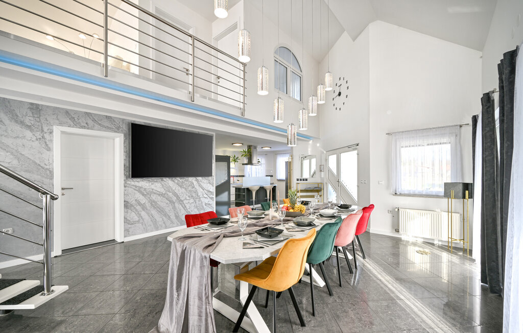 Entrez et laissez-vous séduire par l'ambiance élégante de cette confortable maison de vacances, où vous pourrez passer des vacances inoubliables avec vos amis ou votre famille. Réjouissez-vous des soirées culinaires conviviales dans la cuisine spacieuse et bien équipée et célébrez vos repas dans la salle à manger élégante. Détendez-vous ensuite dans le salon confortable sur le luxueux canapé d'angle, tout en regardant vos films préférés en streaming sur la grande télévision, ou passez du temps ensemble autour du baby-foot ou de la Playstation 5.