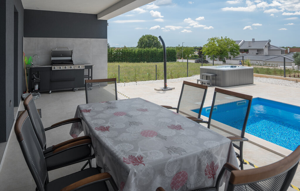 Bien-être à l'extérieur : Location de vacances disposant de chaises-longues et d'un ou plusieurs équipements tels que piscine extérieure, jacuzzi extérieur, lit à baldaquin de jardin etc...
