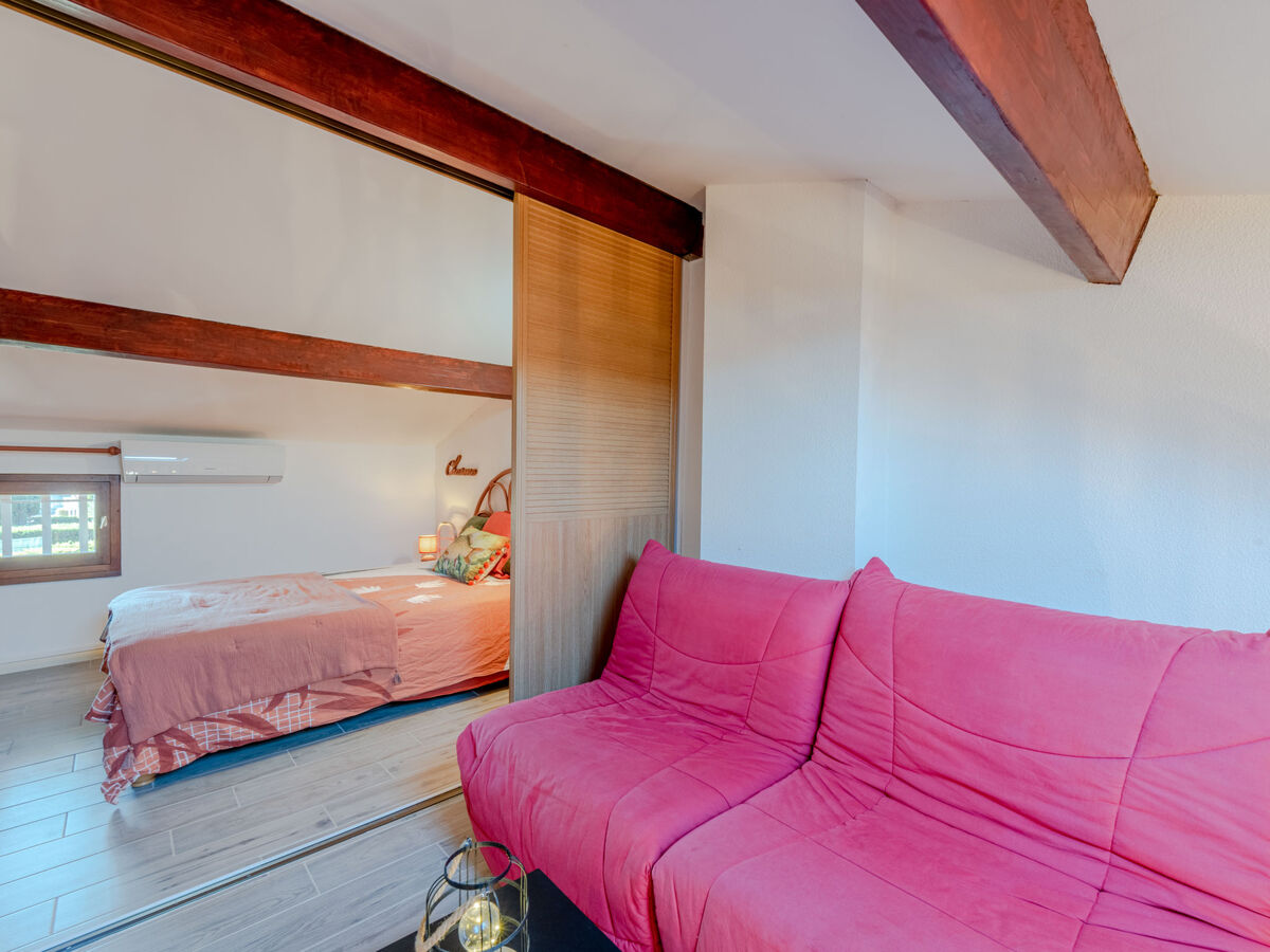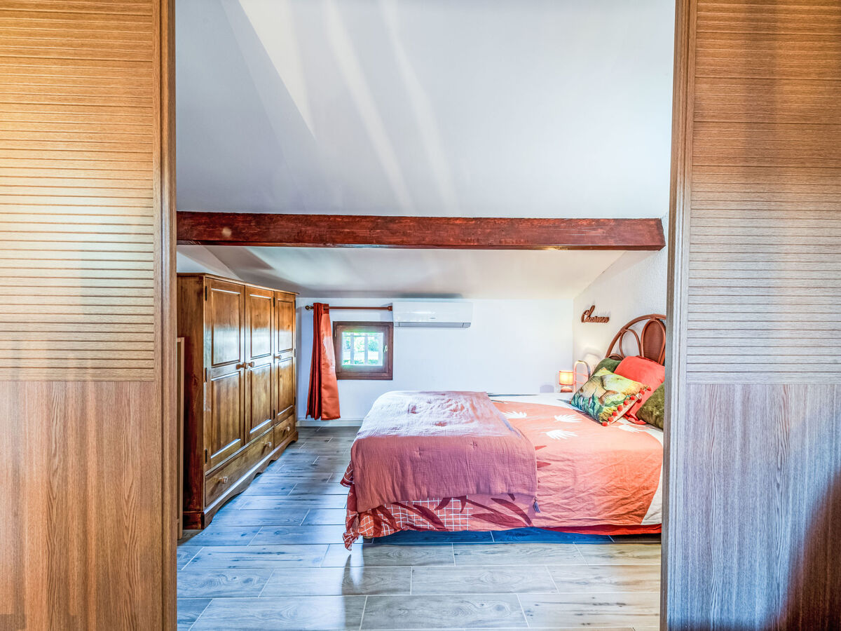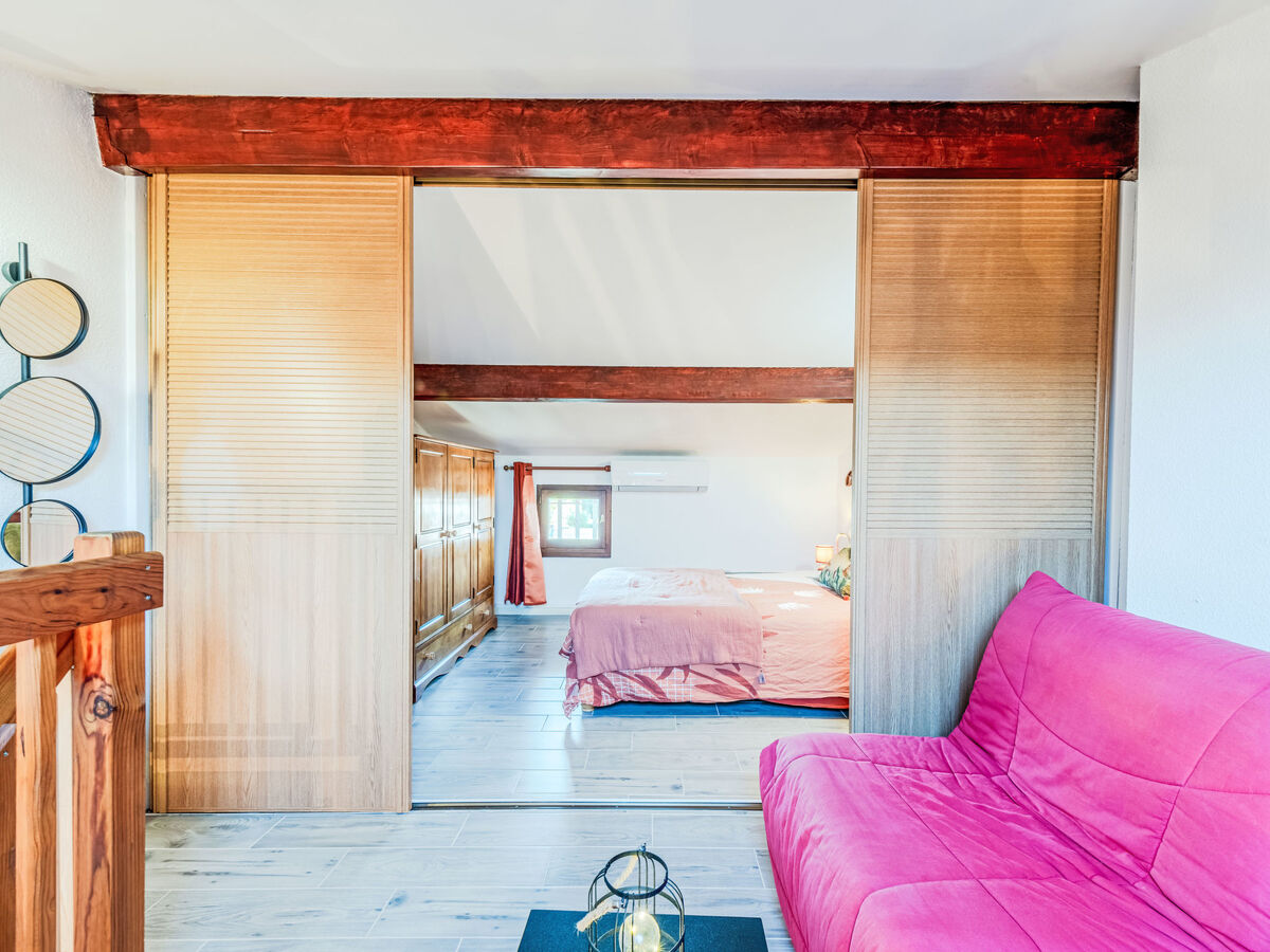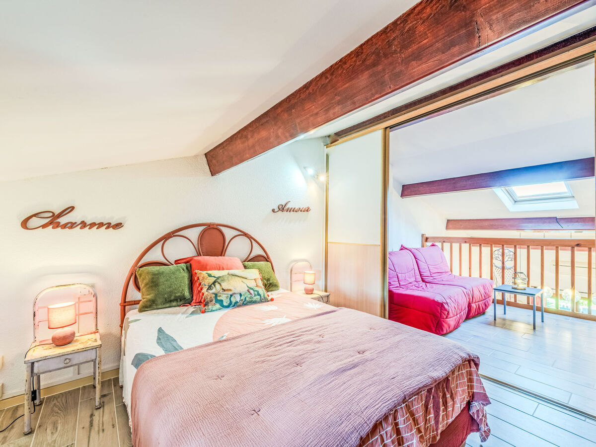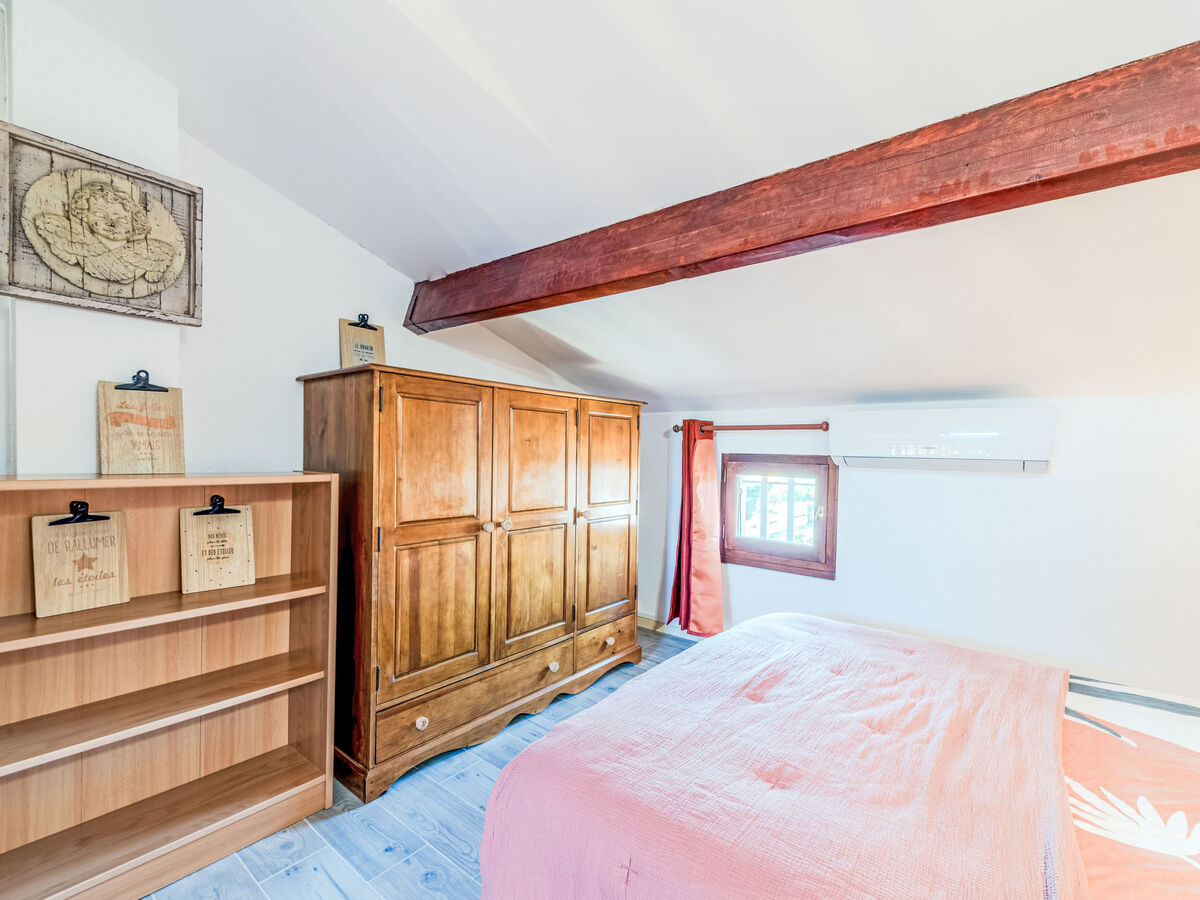 1 chambre avec porte coulissante avec 1 grand-lit (140 cm, longueur 190 cm), air-conditionné.