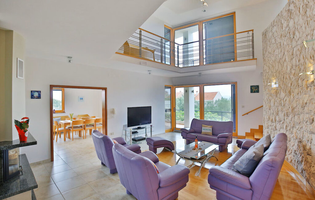 Votre spacieuse maison de vacances à Zadar, qui peut accueillir un grand groupe de voyageurs, vous offre un beau mélange de détente et d'expériences. Préparez vos repas dans la cuisine entièrement équipée, puis dînez dans l'élégante salle à manger. Profitez de l'aménagement confortable du salon pour vous détendre. Les canapés confortables et l'ambiance moderne créent l'atmosphère idéale.