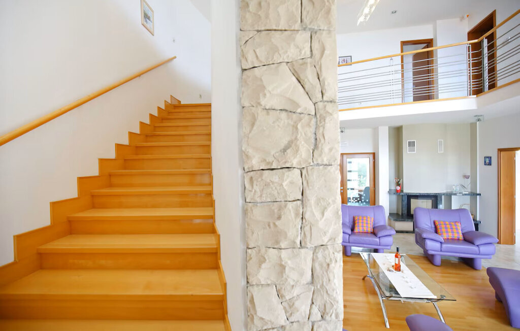 Profitez de l'espace extérieur spacieux avec la piscine privée, entourée d'un jardin bien entretenu et de chaises longues confortables. Plongez dans l'eau cristalline et laissez le quotidien derrière vous. Commencez la journée par un petit déjeuner sur la terrasse couverte. Et passez aussi des soirées agréables sur la terrasse ou sur l'un des balcons avec vue sur les environs et la mer. Vos enfants vont adorer le grand jardin et le trampoline ainsi que les nombreux autres jeux. Ici, l'amusement et la détente sont au rendez-vous pour toute la famille.