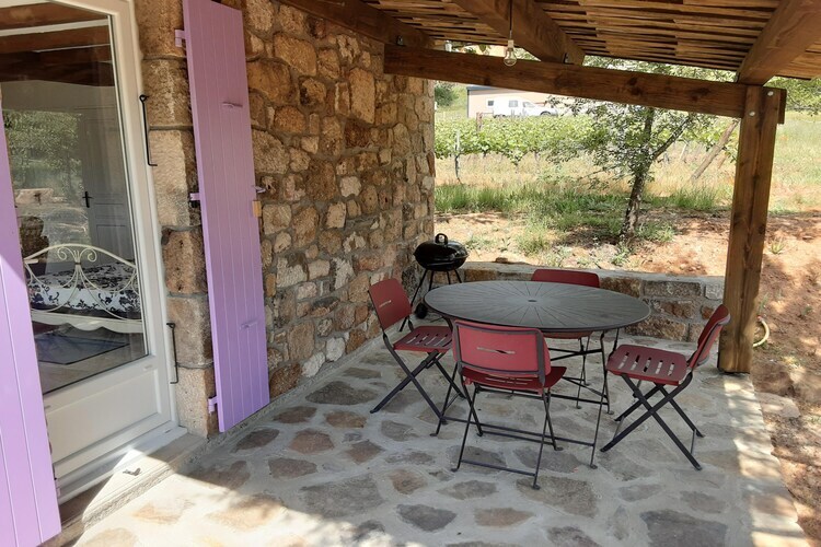 Quatre jolies maisons construites en pierre naturelle et situées sur un domaine de 15 hectares, entre vignes, oliviers et cerisiers, disposant chacune de leur espace privatif. Vous apprécierez l'environnement calme et pourrez vous détendre au bord de la piscine, commune aux quatre maisons. La petite maison en pierre est idéale pour deux personnes. L'intérieur propose une pièce à vivre aménagée en salon/chambre avec un coin cuisine, une salle d'eau et des toilettes séparées. La terrasse couverte avec un barbecue vous invite à déguster vos repas fraîchement préparés!