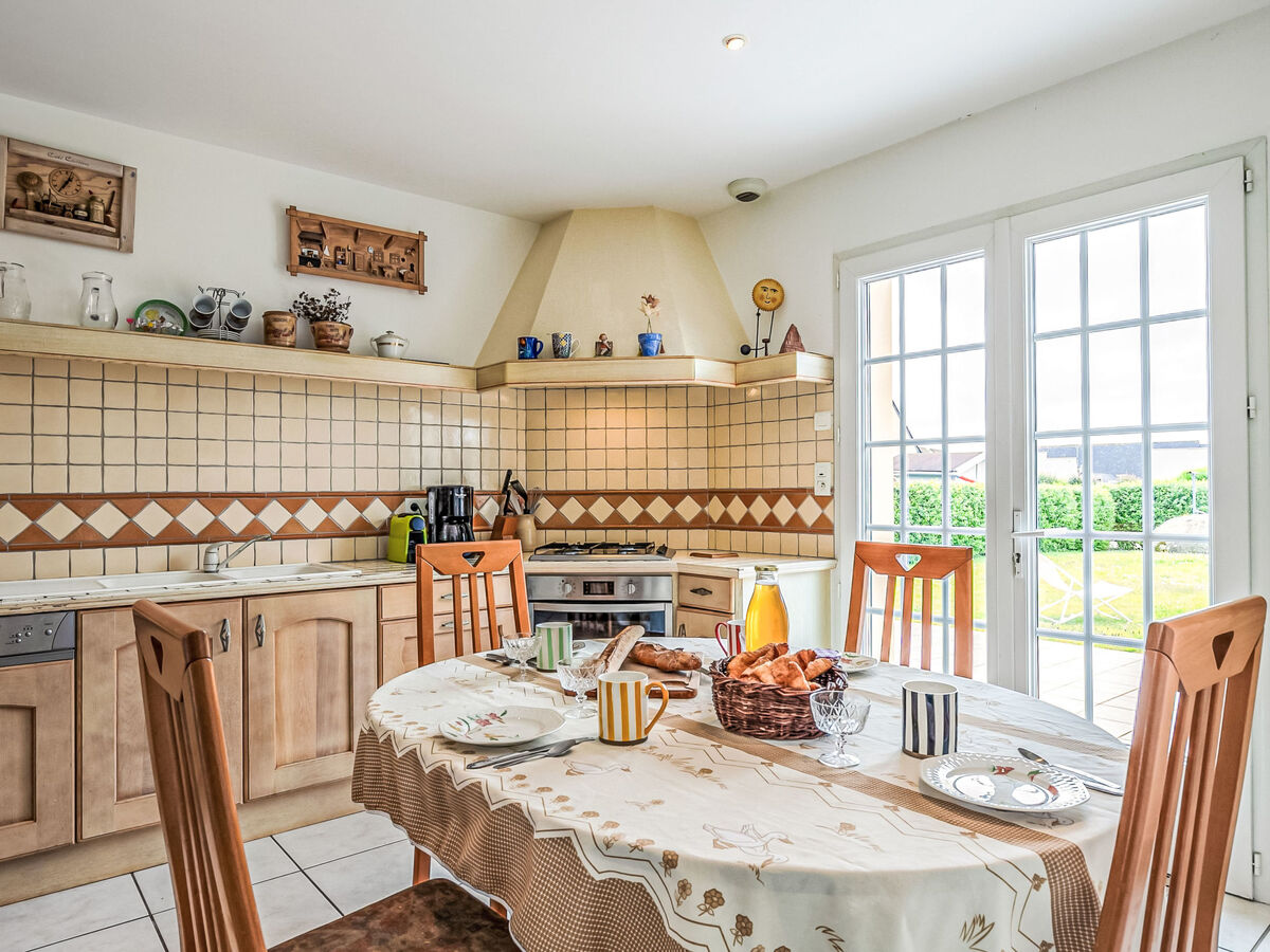 Grande cuisine ouverte 12 m2 (four, lave-vaisselle, 4 feux, grille-pain, bouilloire électrique, micro-ondes, cafetière électrique, Capsules pour machine à café (Nespresso) (NON INCLUSES)) avec table pour les repas.