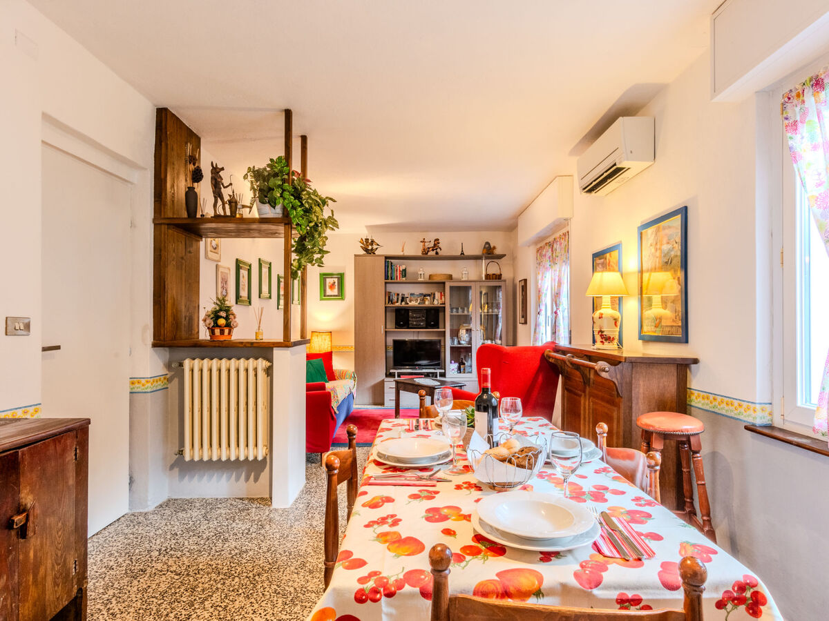 Aménagement confortable: séjour/salle à manger avec table pour les repas et TV (satellite).