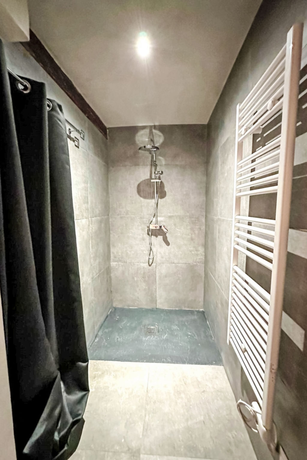 3ème étage: (escalier raide) 1 chambre double, sans armoire avec douche.