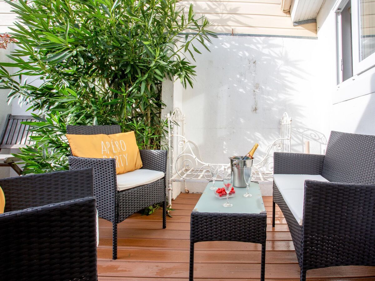 Grande terrasse 12 m2, situation sud et situation ouest.
