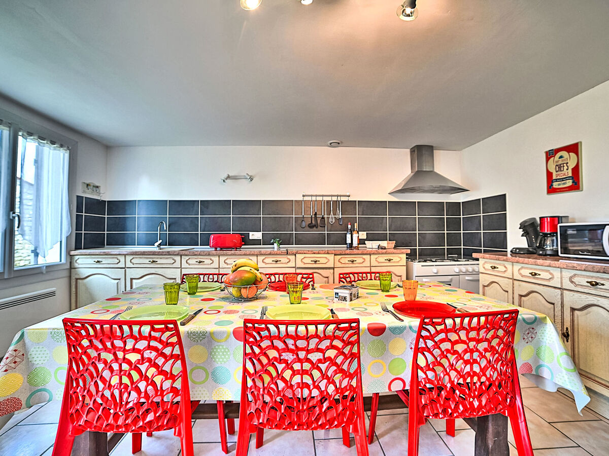 Coin cuisine (four, Poêle à gaz, 4 feux, grille-pain, bouilloire électrique, cafetière électrique).