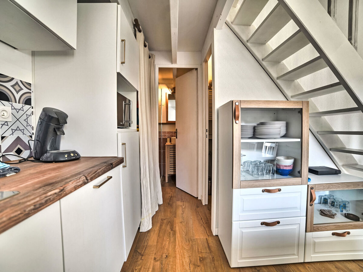 Coin cuisine (four, lave-vaisselle, 3 plaques à induction, grille-pain, bouilloire électrique, micro-ondes, cafetière électrique).