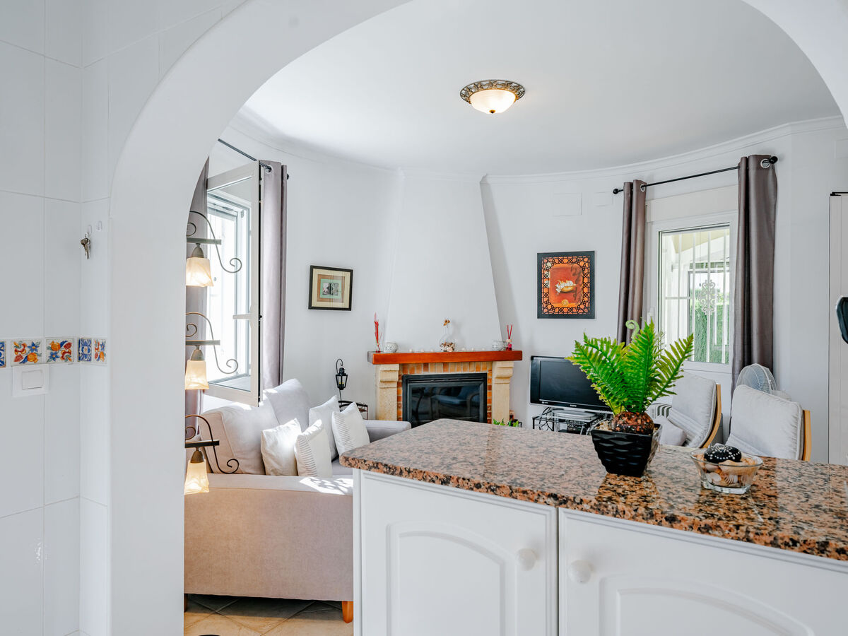 Spacieux, aménagement confortable et de style: séjour/salle à manger avec cheminée et TV (satellite).