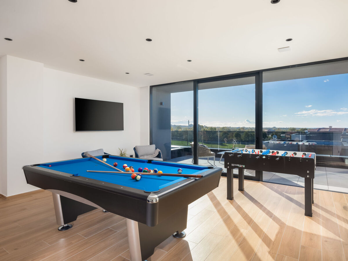 Salle de jeux avec TV (satellite) et air-conditionné.