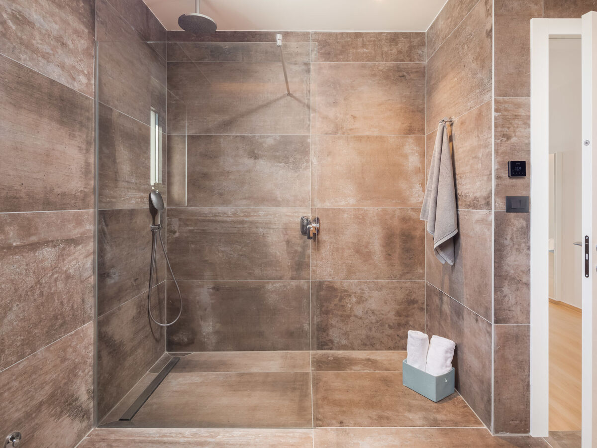 À l'étage inférieur: 3 chambres 18 m2, chaque chambre avec: 1 grand-lit (180 cm, longueur 200 cm), douche/WC et air-conditionné.