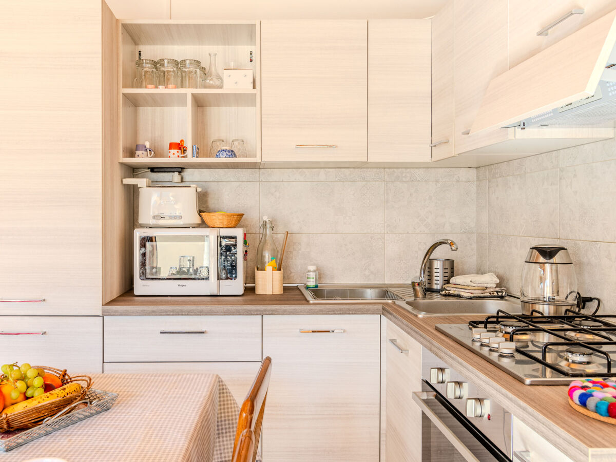 Cuisine ouverte (four, Poêle à gaz, 4 feux, grille-pain, bouilloire électrique, micro-ondes, congélateur, cafetière électrique).
