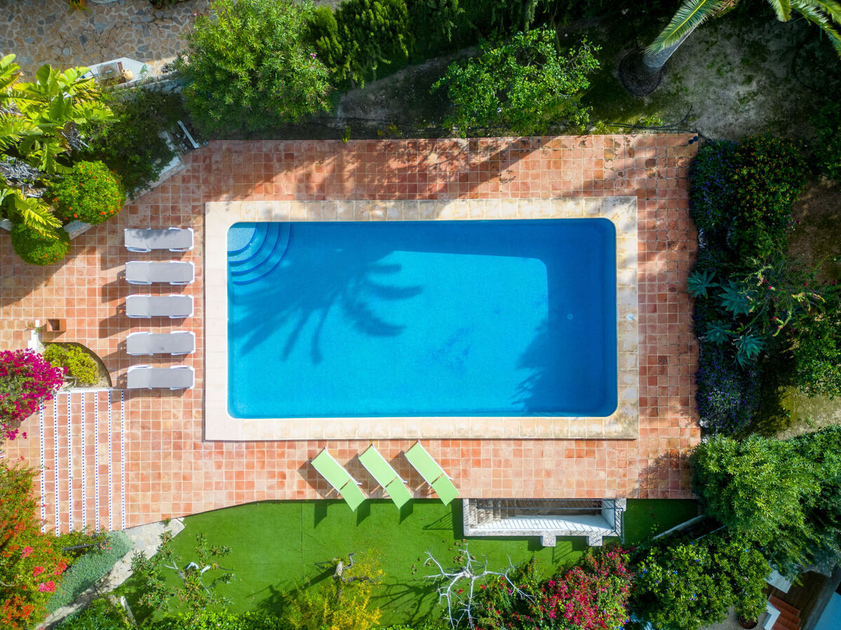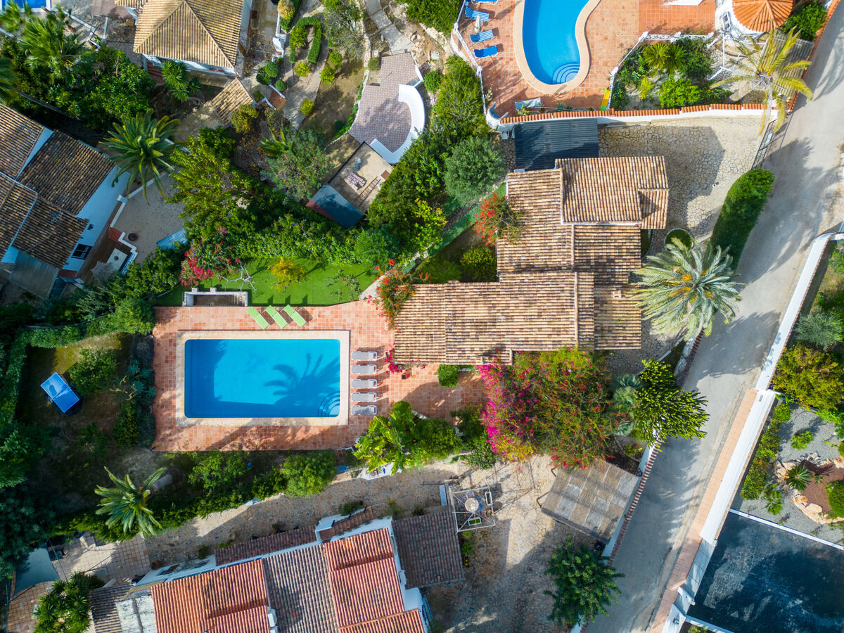 À 3 km du centre de Moraira, à 10 km du centre de Calpe, à 1 km de la mer, à 1 km de la plage, dans une impasse.