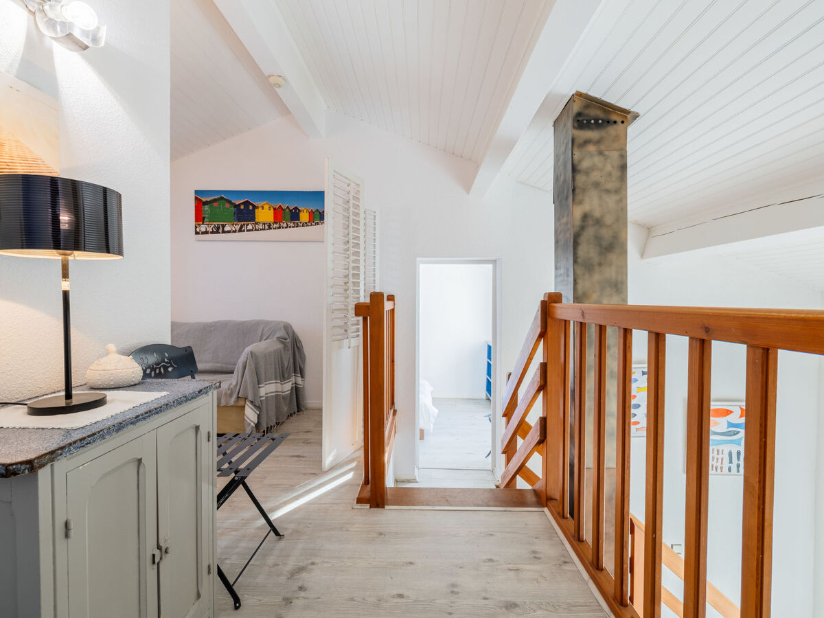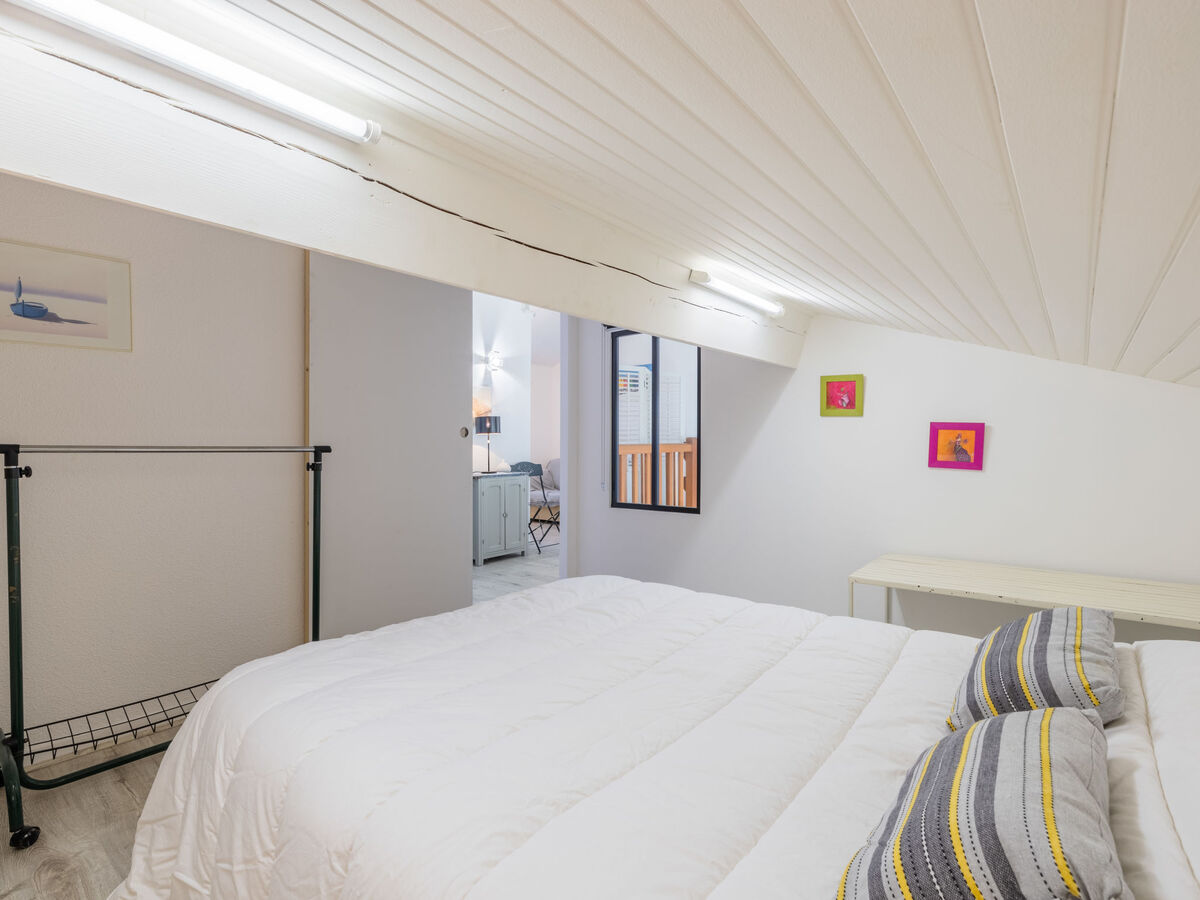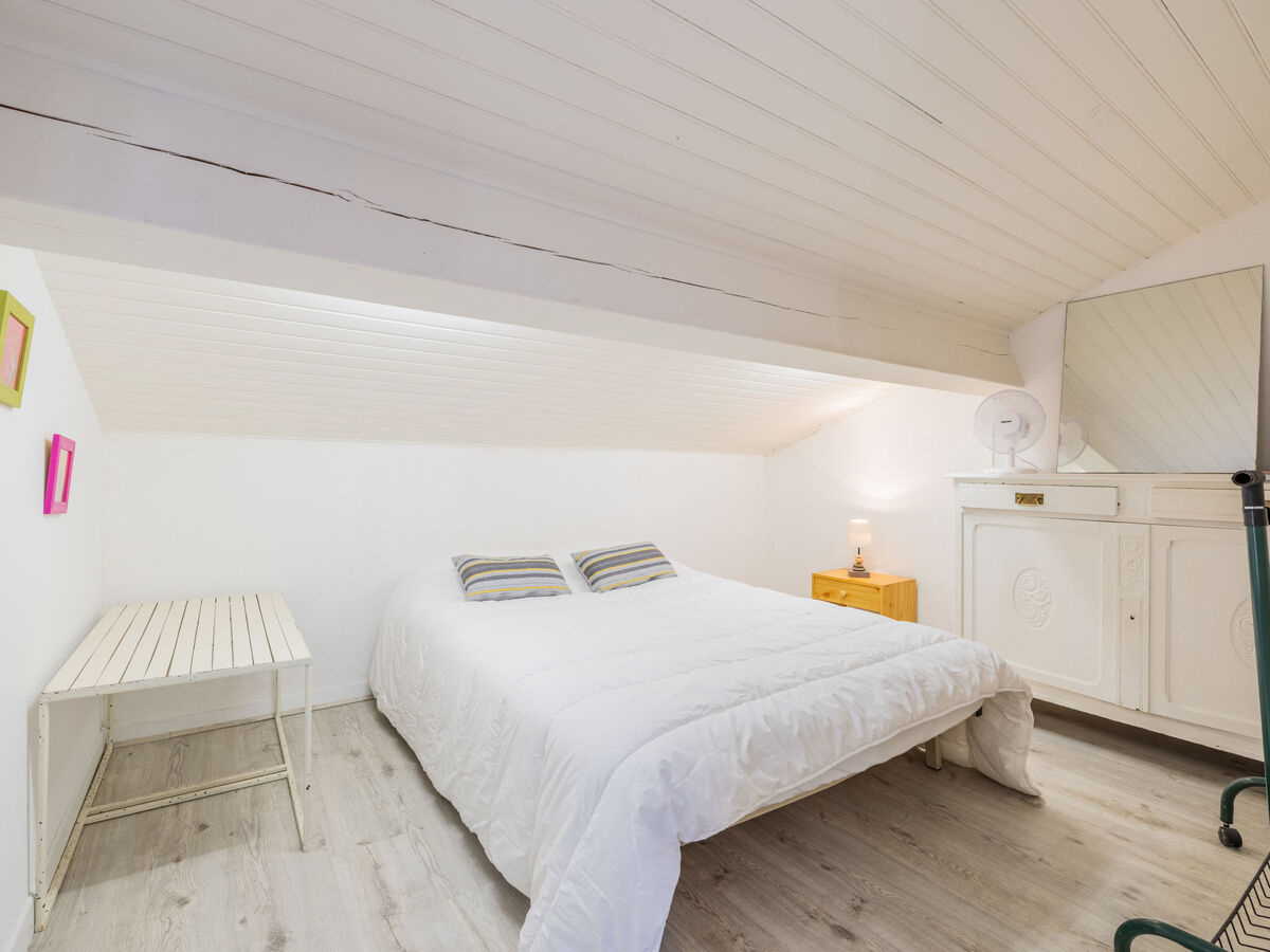 À l'étage supérieur: 1 chambre avec 1 grand-lit (1 x 140 cm, longueur 190 cm).