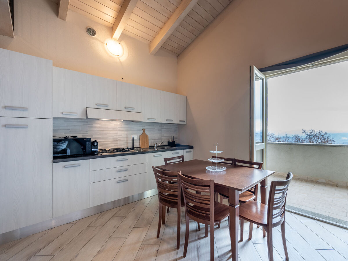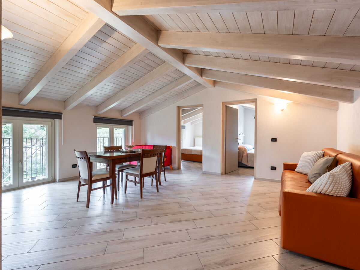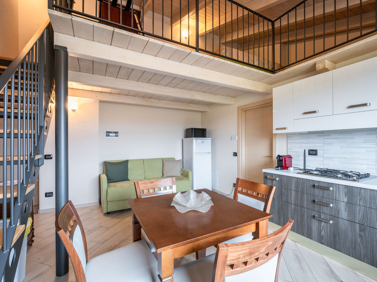 À l'étage supérieur: séjour/chambre à coucher avec 1 divan-lit double, table pour les repas, coin-cuisine et TV.