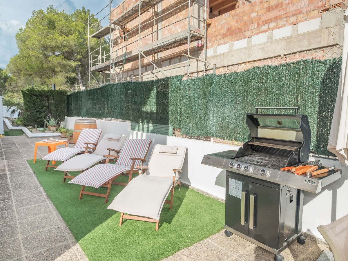 Meubles de terrasse, mobilier de balcon, barbecue, chaises longues (4), loggia, réduit.